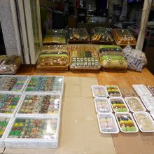 小さい餅屋が立ち並んだ通り。できたての餅が店頭に並んでいる最中であった。小粒のカラフルな餅やシンプルな餅、パウンドケーキ並の大きさのものまであった。その中のひとつの店でどんな餅かきいたが日本語はわからないようであった。