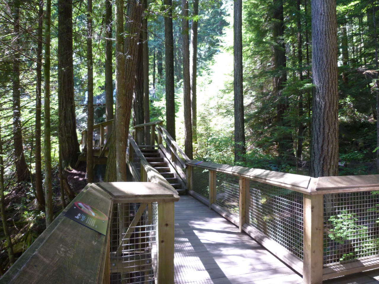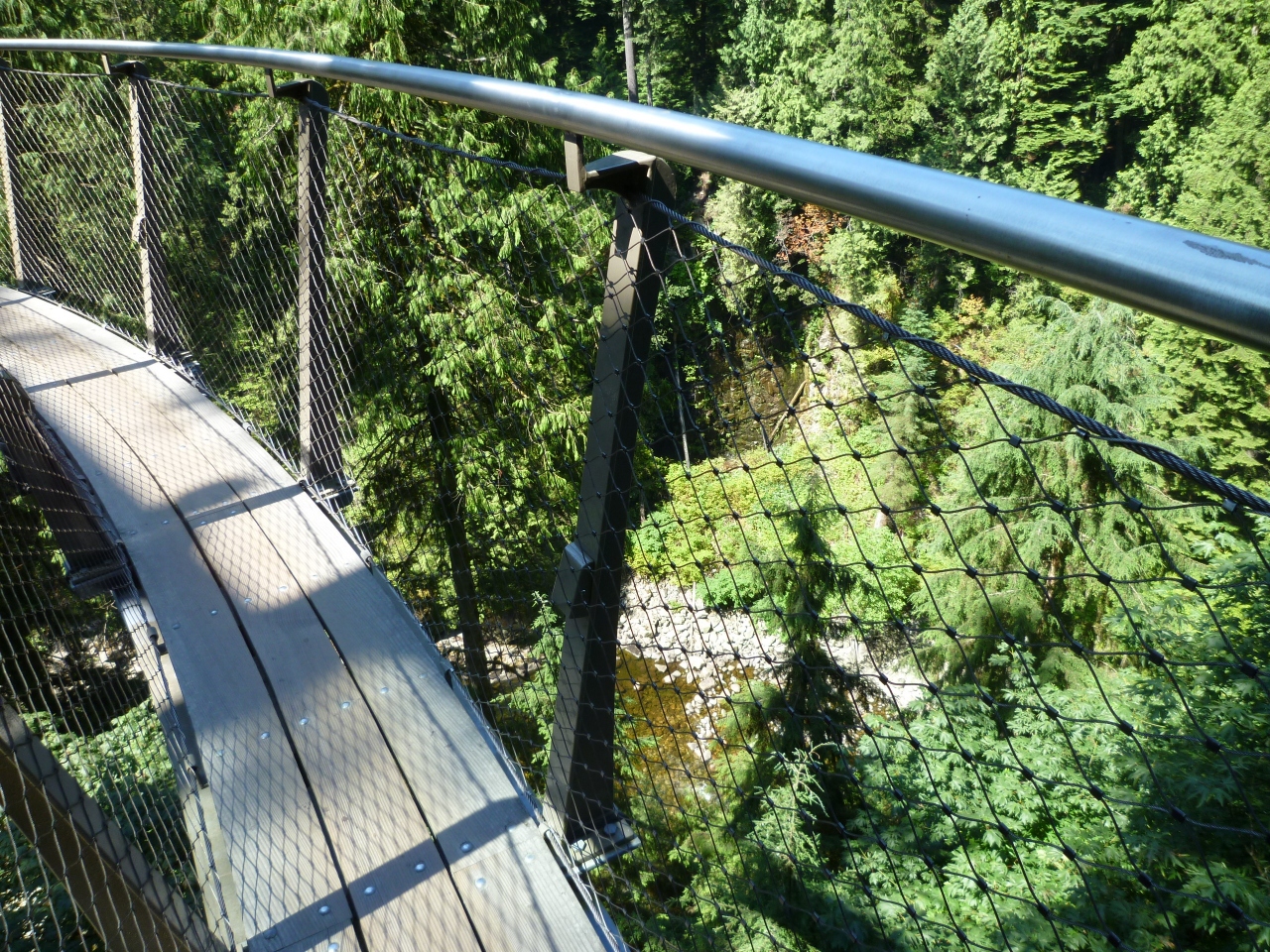 この他にも、木の上に橋があって歩けるようになっていたり、川沿いに真下が見えるような階段や歩道があったりと、高い所を沢山歩きます。