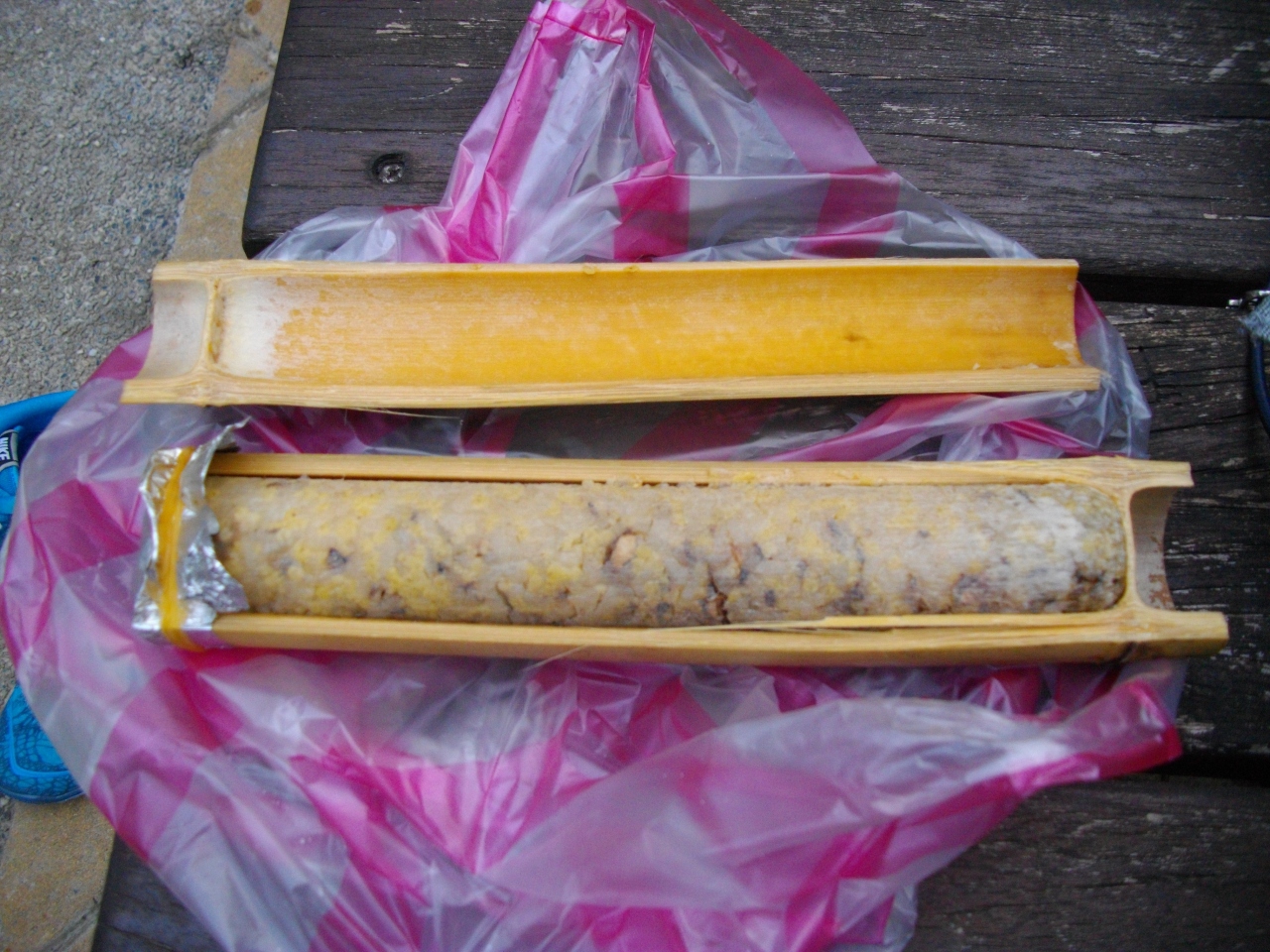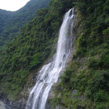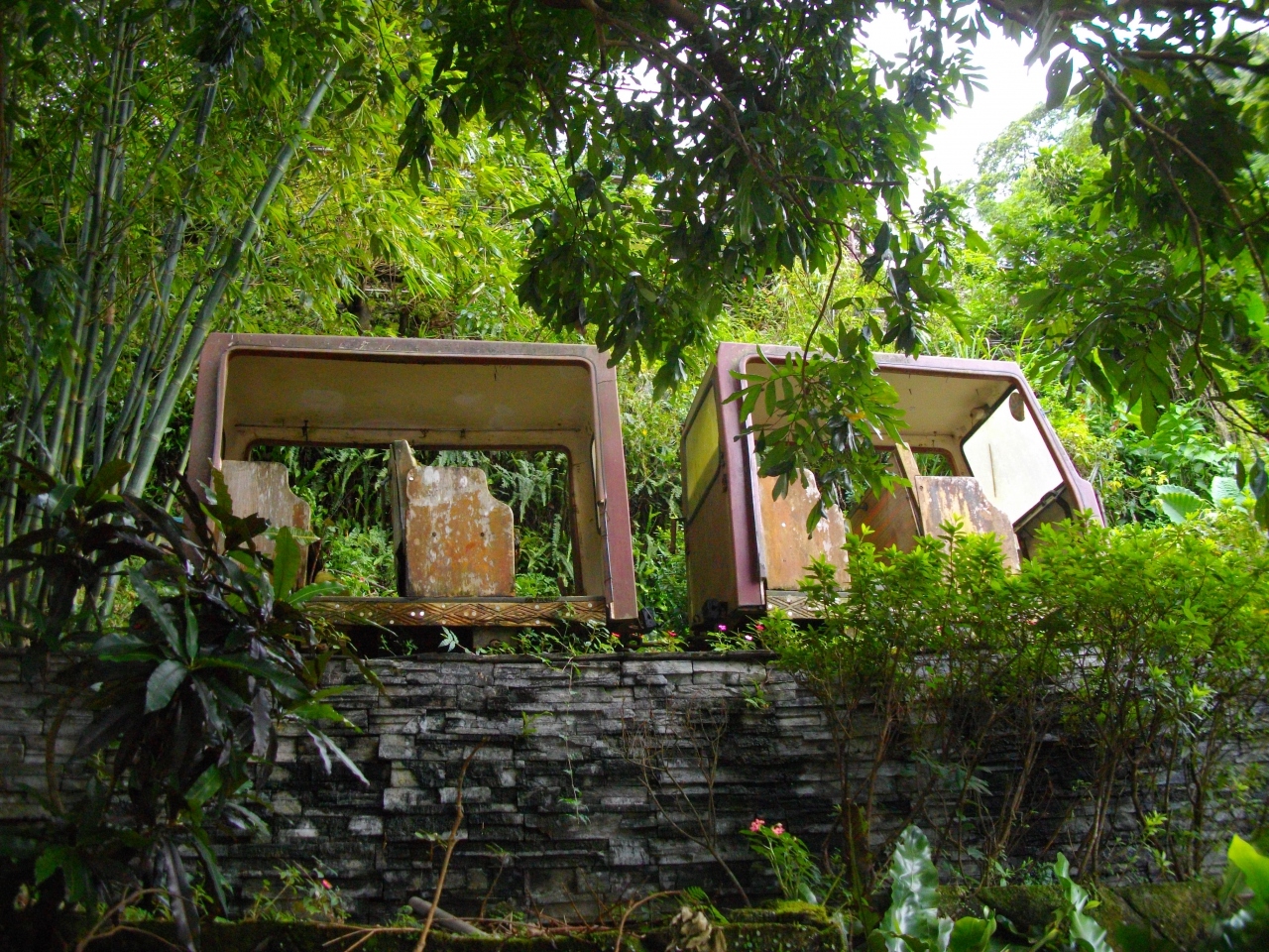 烏來老街を抜けて行くと、山の上にトロッコ乗り場の案内が見えます。あいにく、豪雨の影響で倒木が線路を塞ぎ営業していなく、歩いて上まで上りました。歩くこと40分くらいで、有名な烏來の滝にたどり着きます。雄大な絶景を楽しめます。竹筒に入ったおこわが有名だそうで滝を見ながらいただきます。