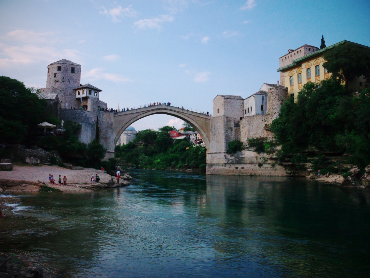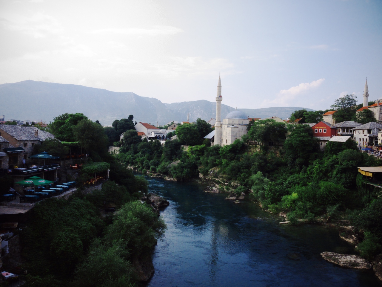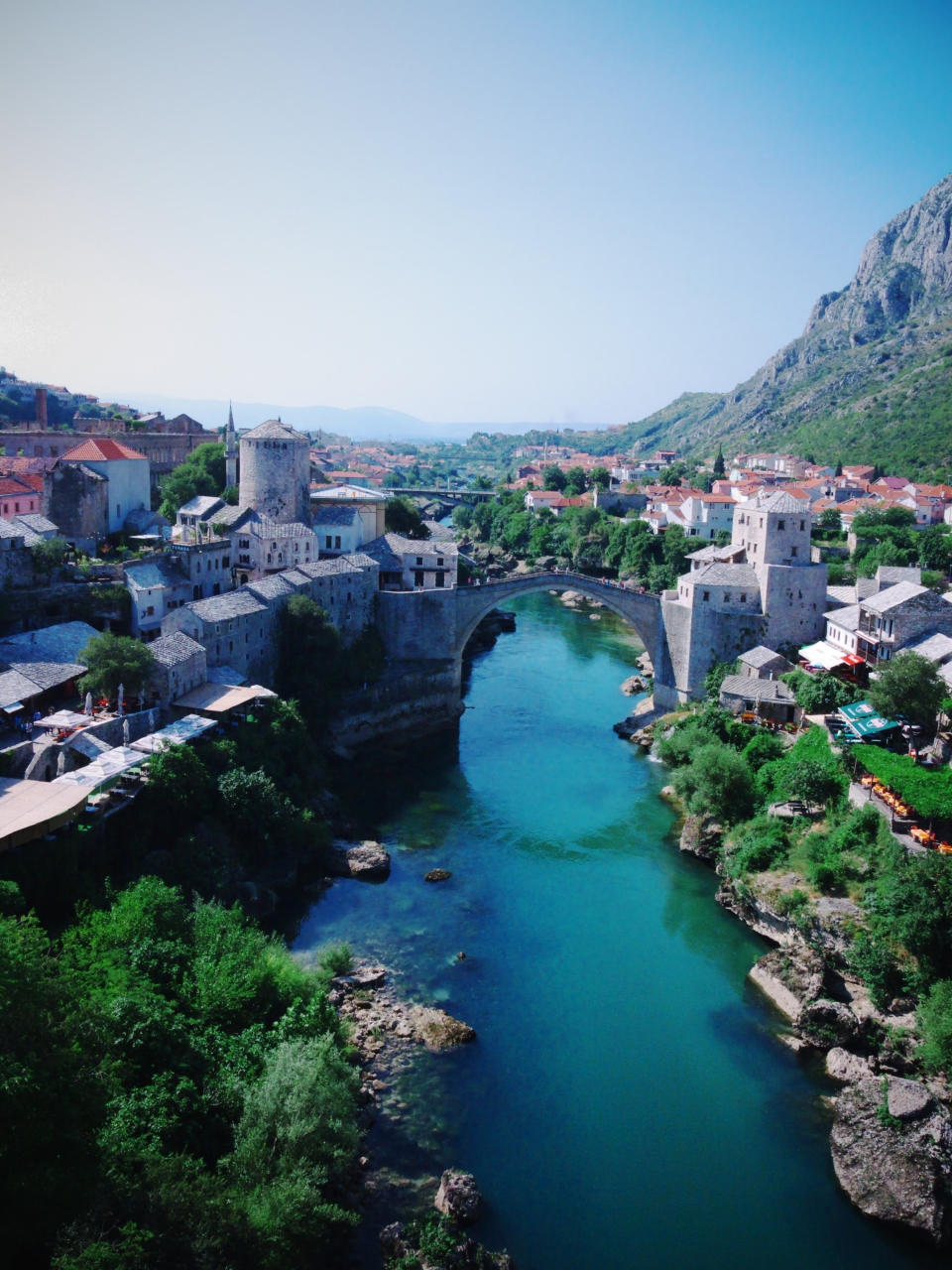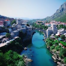 このネトレヴァ川にかかるスターリ・モストの橋、そしてその周りの旧市街の景観はとても美しく、モスタルの街のハイライト。