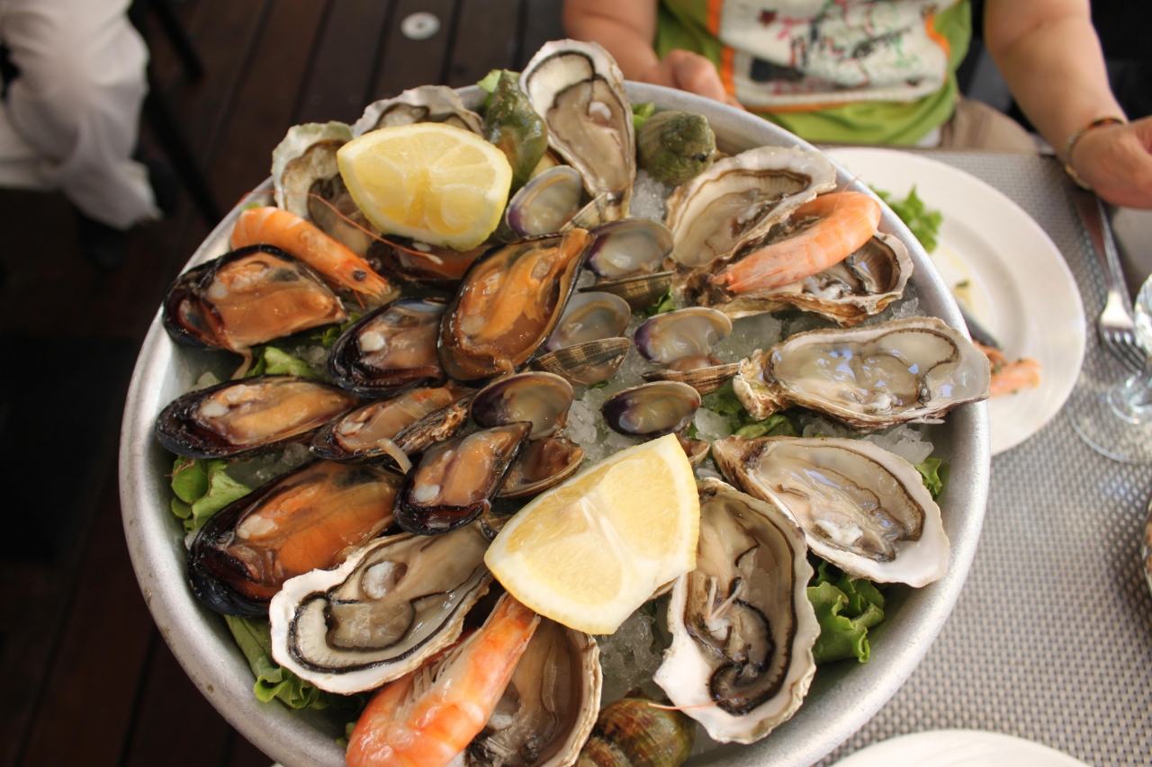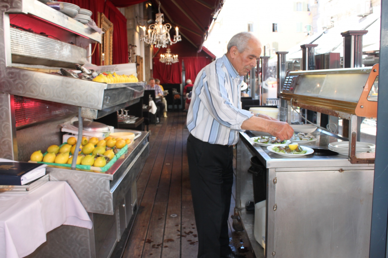 港のそば、シーフードのレストランが並んでいるエリアの中の一店。店先で牡蠣を開けているのが見えたのでそれに誘われて入った。ウエィターは年輩男性だがユーモアがあり、日本語も少し話せて、楽しい人だ。日本のお客さんも来るので覚えたのだとか。