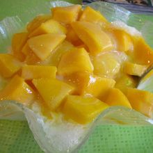 70元(当時)で大満足の芒果牛奶冰が食べられます。メニュー写真入りでレジに貼ってあるので、指差し注文も可能ですので、簡単に注文できます。日本人観光客も二組店内にいました。周りには朝市もあり、グルメスポットです。