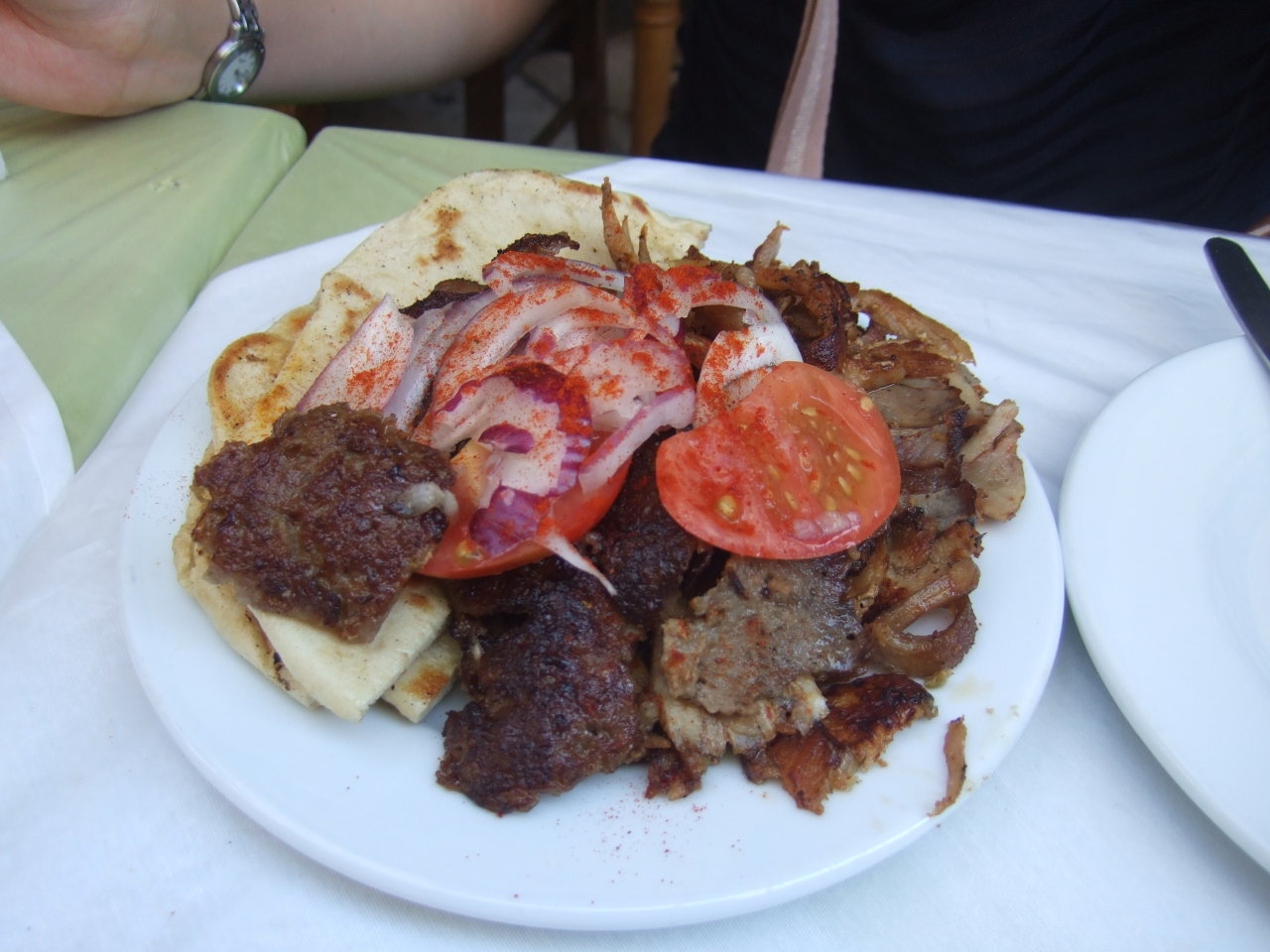 ケバブのお店、テイクアウトのピタも売ってます。基本的に私はあまりお肉が得意でないため、大容量のお肉の皿料理はどう考えても無理だったので何にしようかと思っていると、結構周囲の人は席に座ってテイクアウトのピタを食べていたのでギロスピタを注文したけど、皿料理しかできないと言われた。みんな食べてるのに・・・と思いながらも英語が流暢でないため言い返せず断念。サラダを食べました。一緒に行った友達はケバブの皿料理を食べましたが、その量をみてやっぱり私には無理と思いました。お肉が得意な人にはうれしいと思います。ちなみに友人は全量摂取しましたがお腹いっぱいと言ってました。