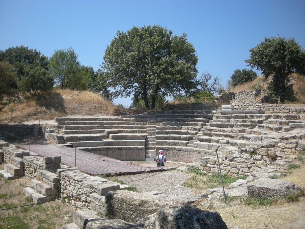 古代ギリシャの逸話の超有名である”トロイ”の都市遺跡が発見されたのが、割と最近のことですが、発掘した中にはここすり鉢状の劇場である「オデオン(劇場)」があります。ここのトロイの遺跡群は石の土台が中心の遺跡なので、当時の面影は想像しにくいですが、その中でもここは、どちらかといえばですが、誰が見ても、現状というか観客席がある場所だとわかる、保存状態がいい方のものですね。現在、他の遺跡群も発掘中とのことなので、保存状態のいいものをさらに掘り当てたらいいですね。