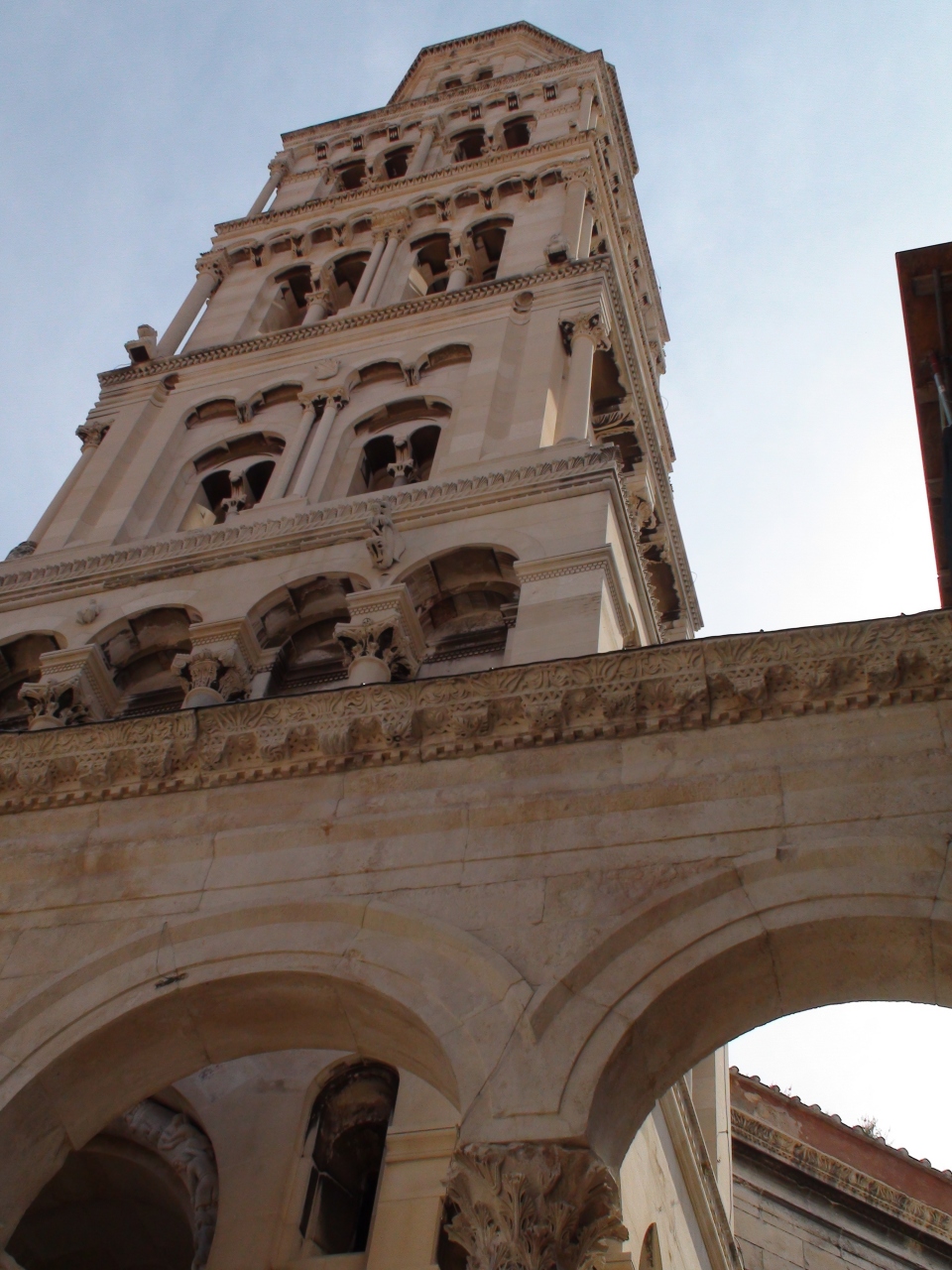 この大聖堂は、デイオクレテイアヌス帝の霊廟として建てられたもので1階は礼拝堂になっており聖堂の頂上までつづれ折の階段を歩いて上れる。頂上からの眺めはすばらしくアドリア海を見渡すことが出来、眼下には宮殿の城壁をぐるりと見渡せる。