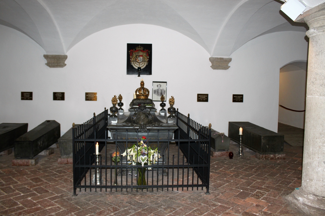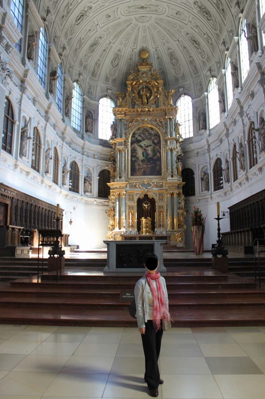 内部はあまり華美でなく静かなたたずまい。「悪魔と戦う聖ミヒャエル」の祭壇画が飾られている。また地下にはルートヴィヒ2世のお墓がある。