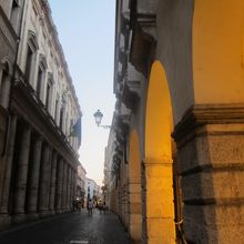 ヴィチェンツァの駅から正面の通りを500mほど行き、通りにつきあたった所で右に曲がり、門をくぐって1~2kmほど続く石畳の通りです。割合、人通りが賑やかで、服や食べ物を売る店があちこちにありました。途中、ドゥオーモやバジリカに入っていく小径があります。ずっと最後まで行くと、キエリカーティ宮があります。ほとんど平坦な道ですが、最後の方だけ下り坂となります。カフェやジェラートの店もあるので、いろいろ散策しながら行くとよいと思います。