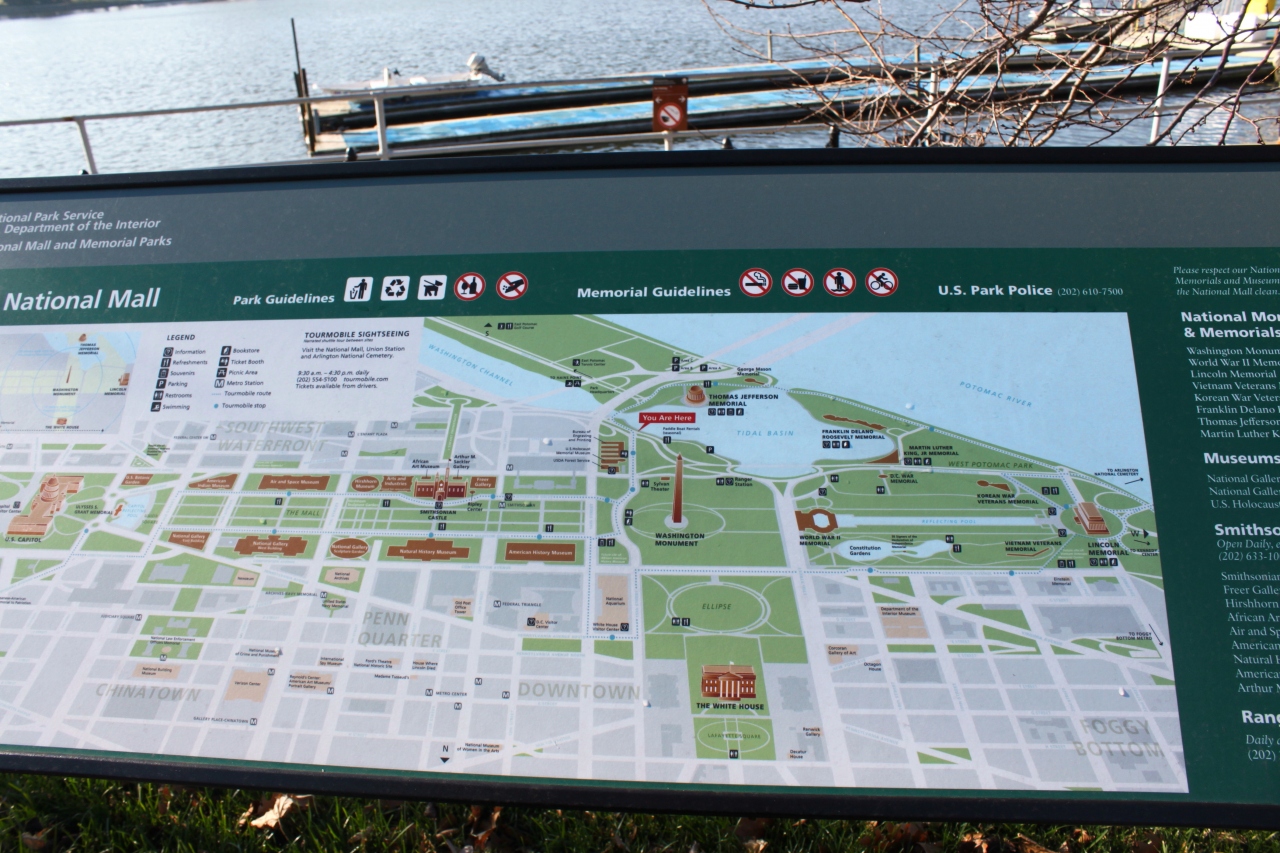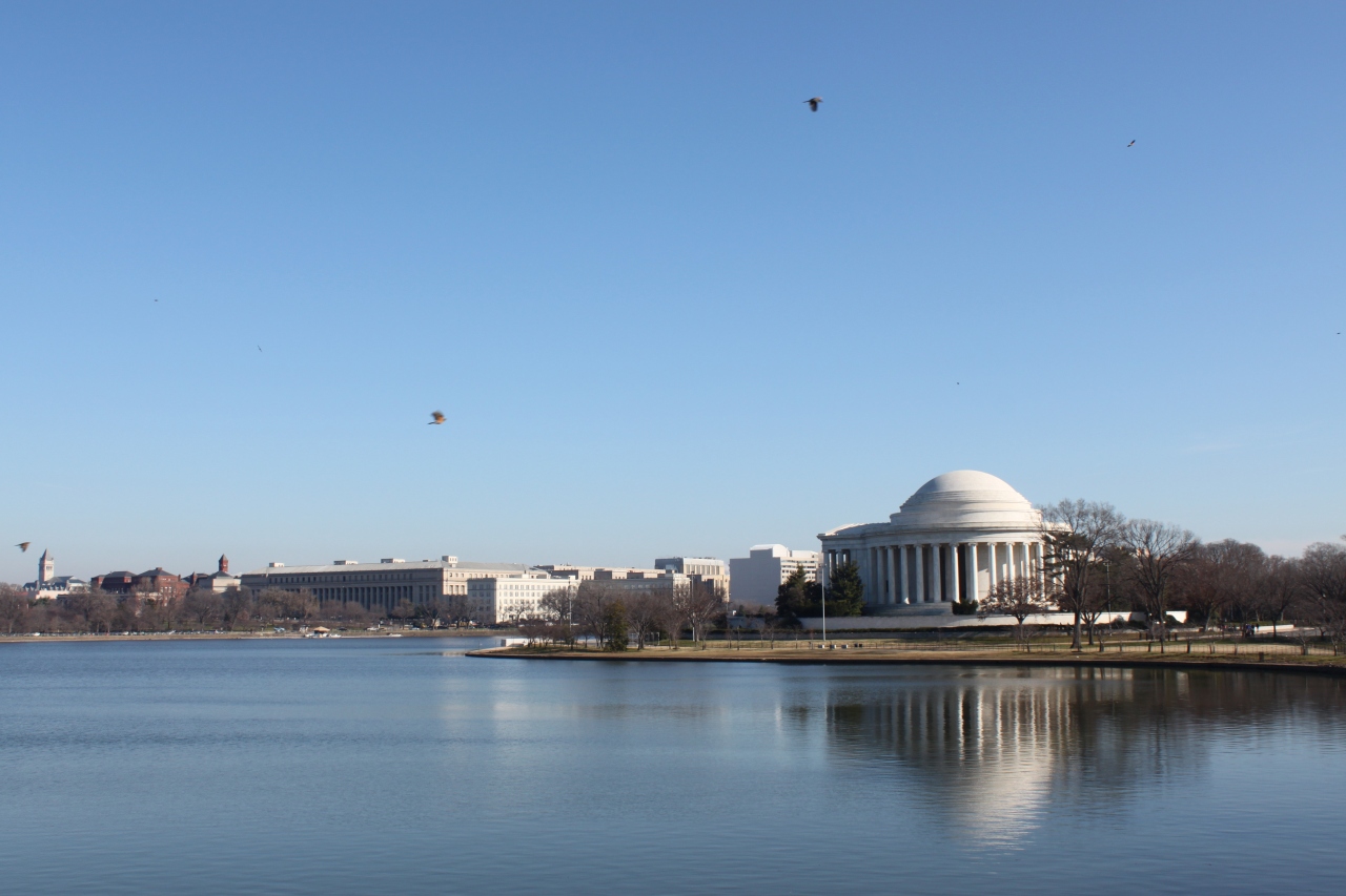 ワシントンDCの中心地、モールを冬の晴れた日、散策した。一帯は緑の広がる広い丘のような場所で真ん中に記念塔がある。