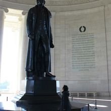 建物内部に、アメリカ第三代大統領ジェファーソンのブロンズ像が建っている。独立宣言の起草者としても有名だ。身長5.8?と特大サイズなので見上げないと顔は視界に入らない。