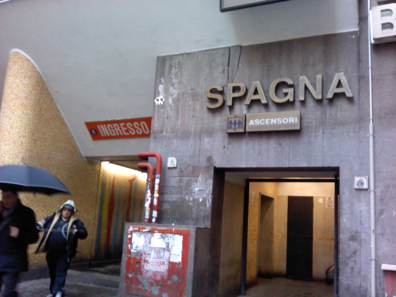 ここの駅はホームから、南側のでぐちまで、結構長いトンネルを歩き、やっと出口に出ます。でぐちからでると、そこはスペイン広場なのです。