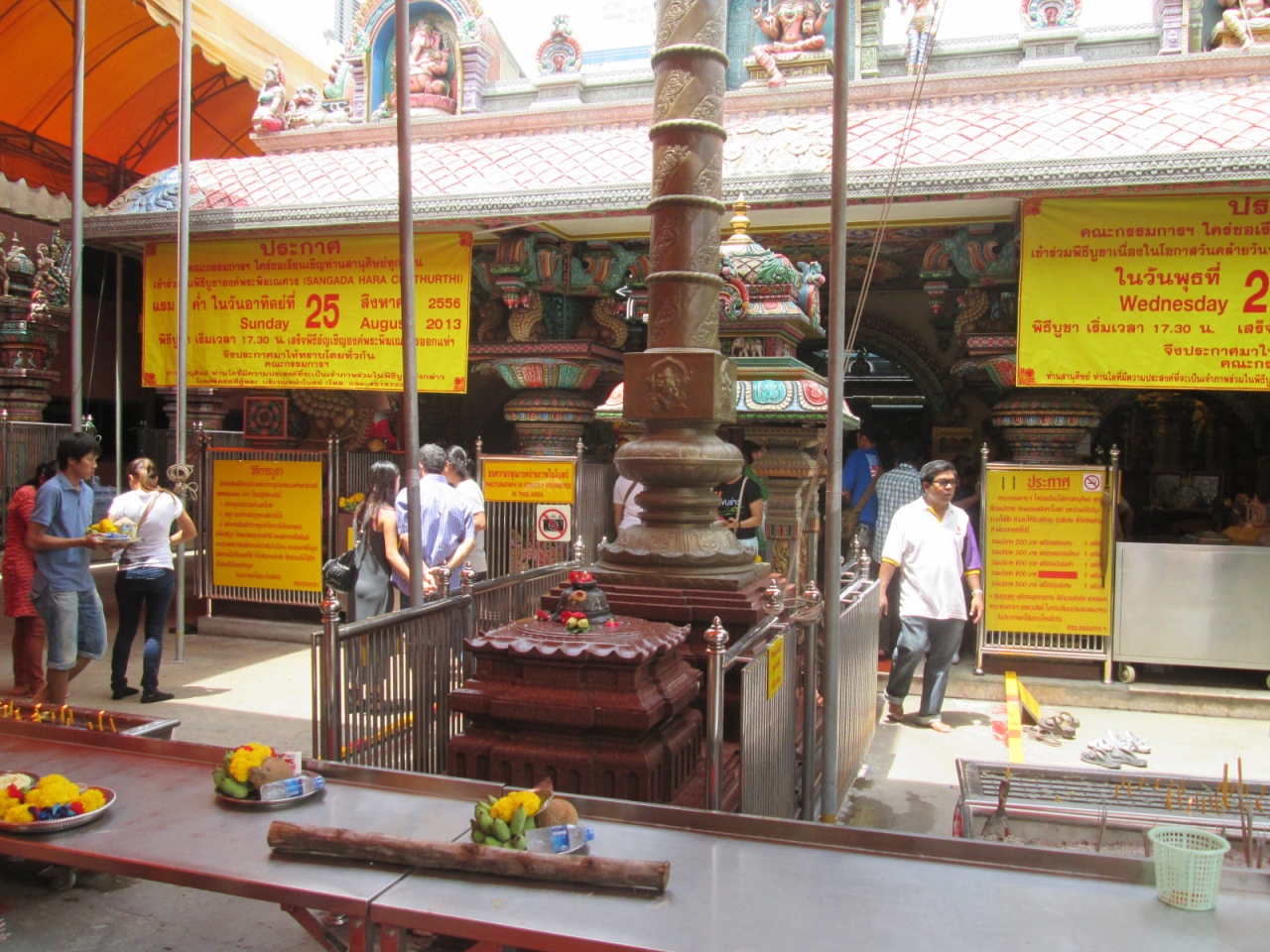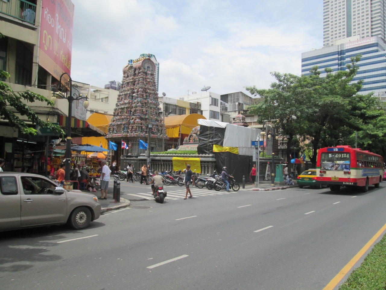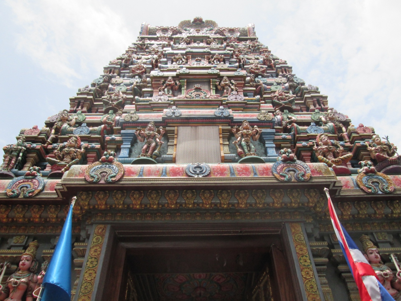タクシーでシーロム通りを走っていると、必ず目に入る派手な装飾。ずっと前から気にはなっていたのですが、訪問したのは今回が初めてです。大規模修復中なのでしょう、多くの場所がシートで覆われていて残念でしたが、仕方ありません。シーロム通り沿いの門から入ると、何か特別な日だったのか、あるいは常にそうなのか分かりませんが、境内は信者の人たちで一杯でした。見るもの、感じるもの、何もかも初めてのものばかり。ふと見ると、境内で靴を履いているのは私だけ。もちろん、直ぐに脱ぎました。本当は本堂に入って御本尊様を見たかったのですが、信者の人であふれている本堂に入る勇気はなく、遠目から写真を撮っただけで退散しました。御本尊様には次の機会にお目にかかりたいと思います。