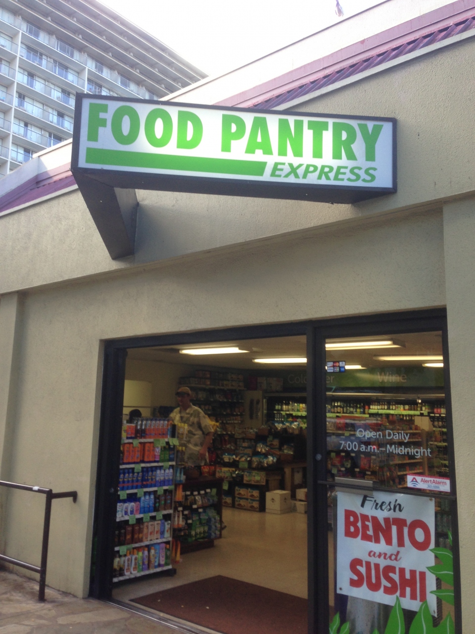 クヒオ通り沿いにあるフードパントリーは24時間営業のスーパーマーケットで、客層はロコと欧米人が中心でした。品揃えも豊富で、小ぶりなフードコーナーも設置されていました。今回気づきましたが、お店の横にフードパントリーエクスプレスというコンビニが新設されていました。