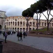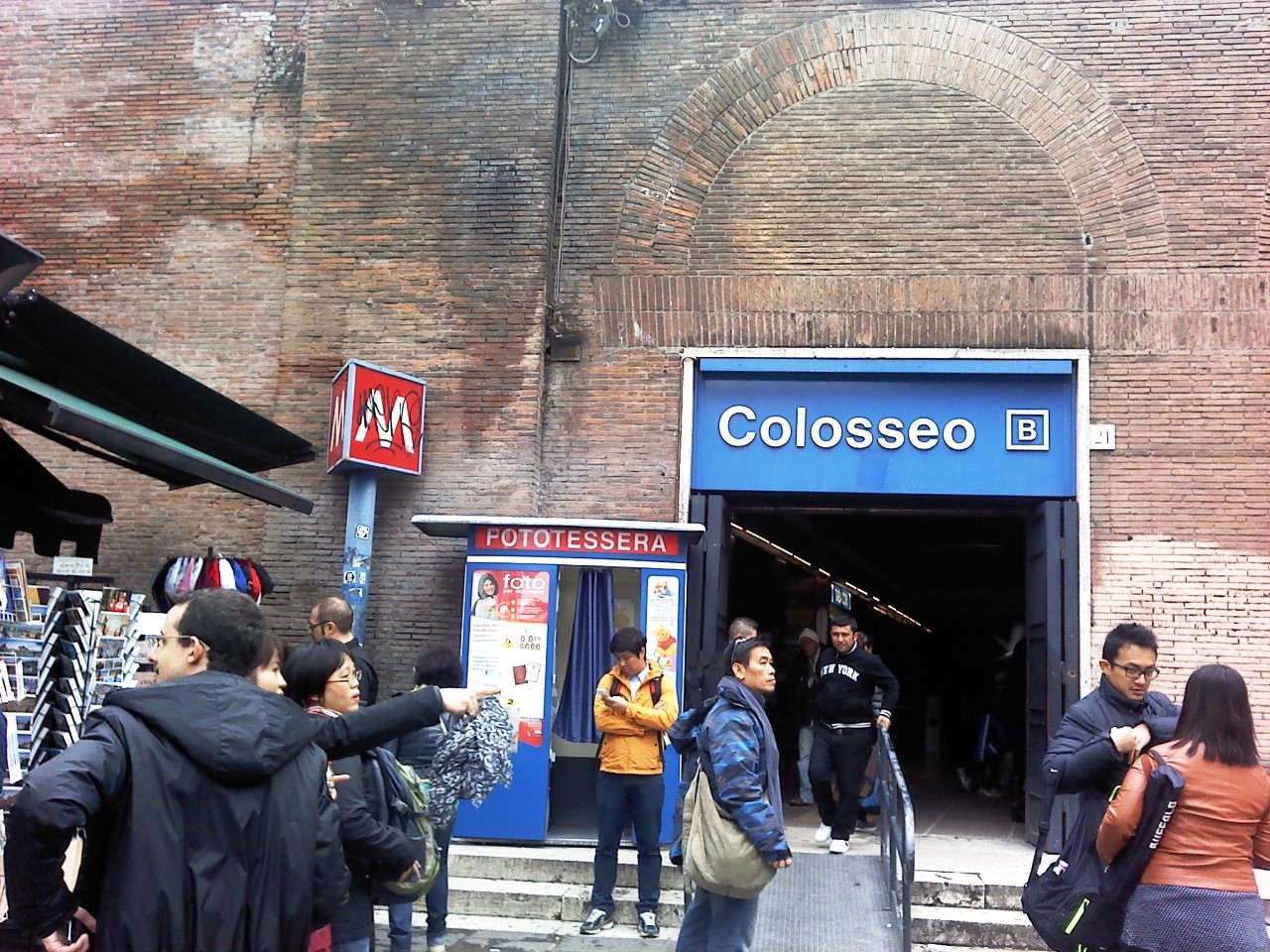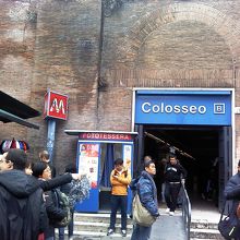 ここに公共交通機関でアクセスするのは、ローマ地下鉄B線のここコロッセオ駅が便利です。駅で降りると、少々長い地下通路を通り、地上に出ると、目の前にコロッセオがあります。