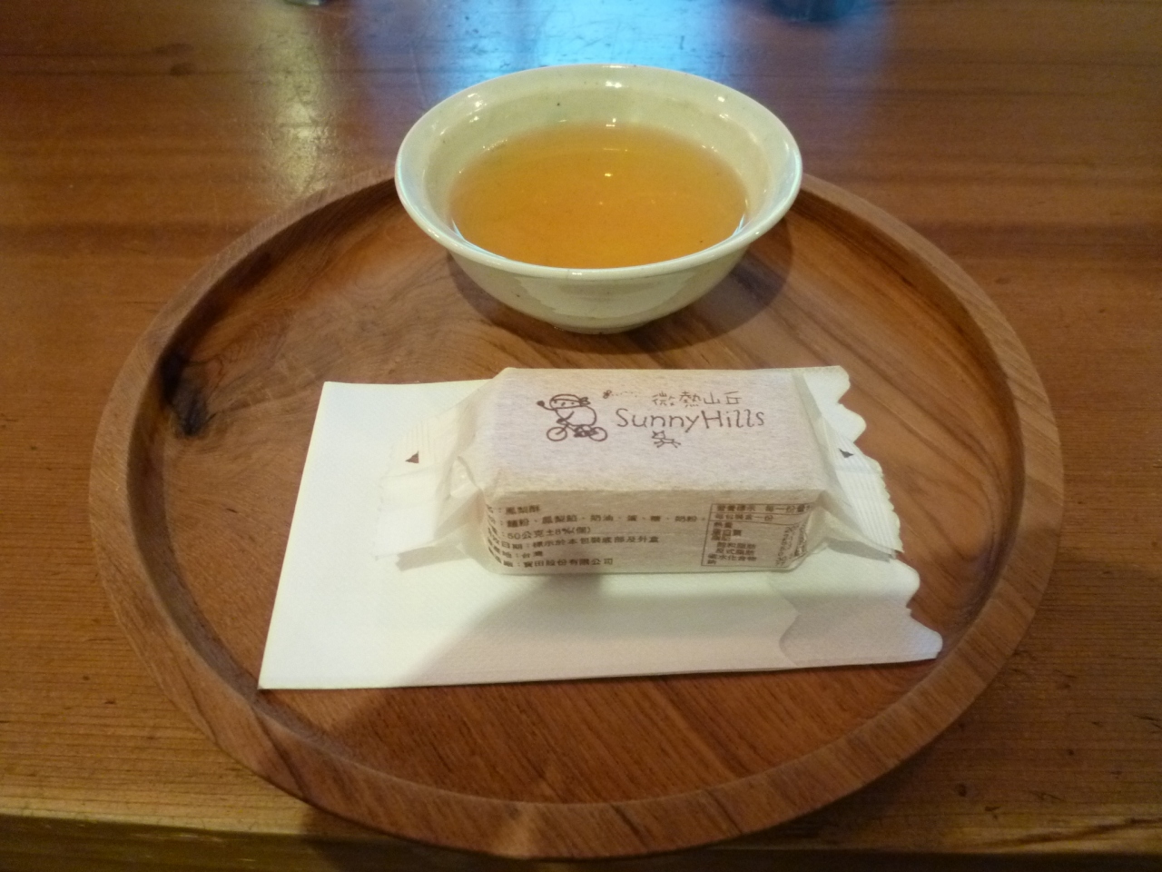 お茶とあのパイナップルケーキが1つ袋ごとサービスされました。