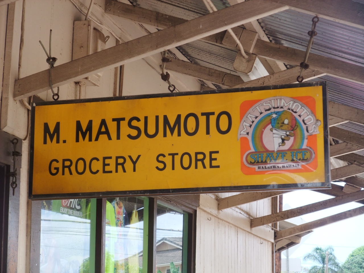 ハレイワ・タウンでは町の雰囲気を楽しみながら散策、行列のできるレインボーシェブアイスの店にやってきました。