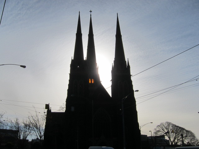 Vライン・市内ループ線のParliament駅から徒歩5分程の所にある巨大な聖堂。無料のシティトラムの停車場からも近くアクセスは容易。(ビジターシャトルバスの停車場からは距離があります。)