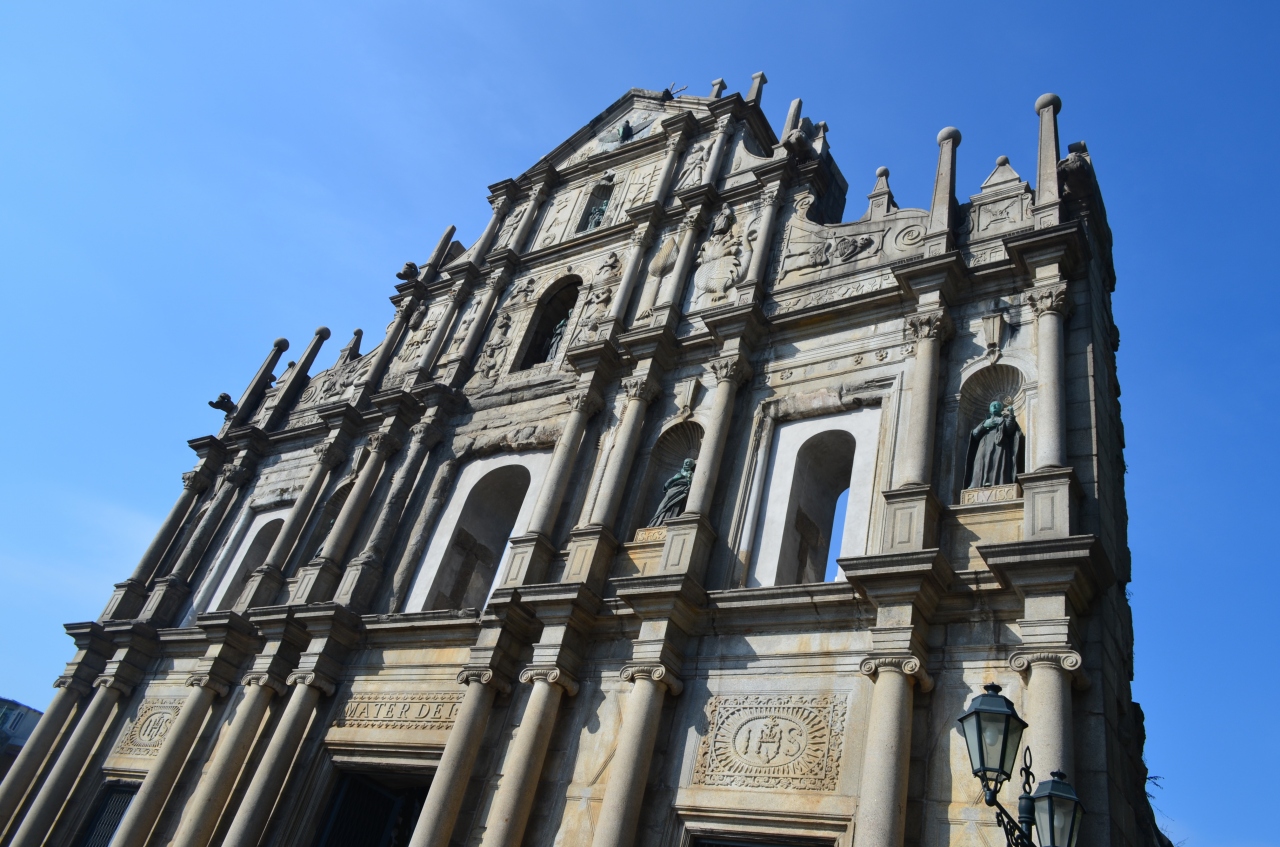 セなど広場から細い路地を進んでいくと、階段を上がった場所に立派なファサードだけの姿が見える。それが聖ポール天主堂跡。1602年に建設され、その当時はアジアで最も大きな教会だったという。しかし1835年の火災で消失し現在の姿になったのだという。日本のように地震が頻発する場所であればきっと残ってはいないだろうと思われる遺跡。