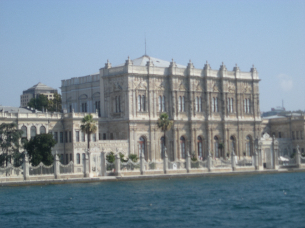イスタンブールの”ボスポラス海峡クルーズ”で目に入ってくるのがここ「ドルマバフチェ宮殿」。なんでも、ここは”埋め立てられた庭園”という意味を持つ19世紀中ごろに建てられた大理石の豪華な宮殿です。ここはオスマントルコ帝国の、トプカプ宮殿にかわって最後の王宮として利用されたものだそうです。このクルーズで海から見る建物の姿は素敵ですよ。海(ボスポラス海峡)からのアングルも意識して建築したのですかね?