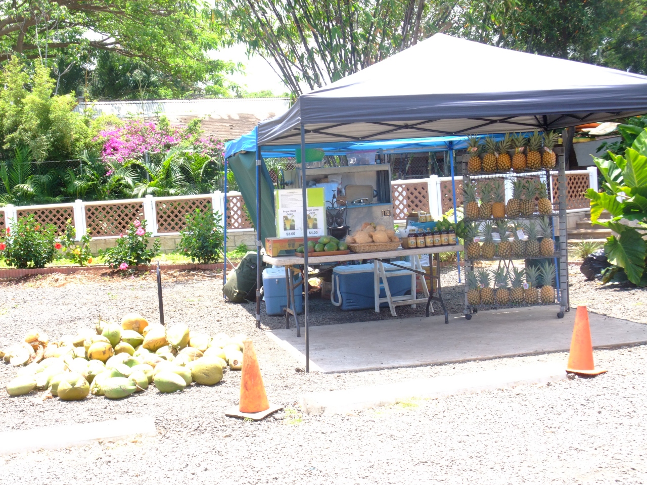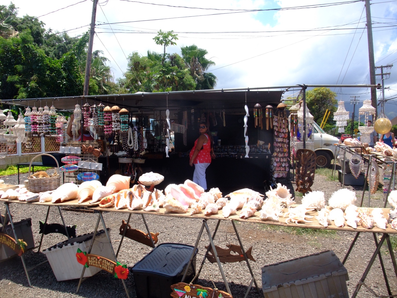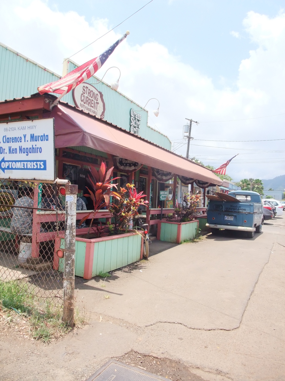 ぶらぶらと町を散策すれば、パイナップルを売る店、貝殻を売る店などが目につきます。海が近いので、サーファー関連の店も多いです。