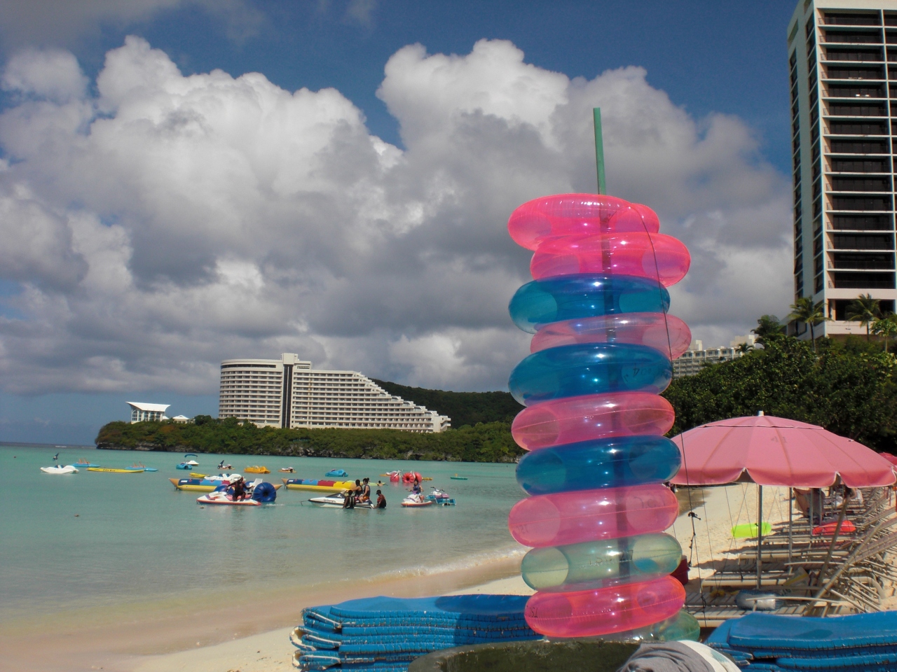 白砂に青い海・・ただ紫外線がきつそうで、私たちはホテルのベランダから眺めたり、近くまでは行きましたが昼間は影のあるところまで。