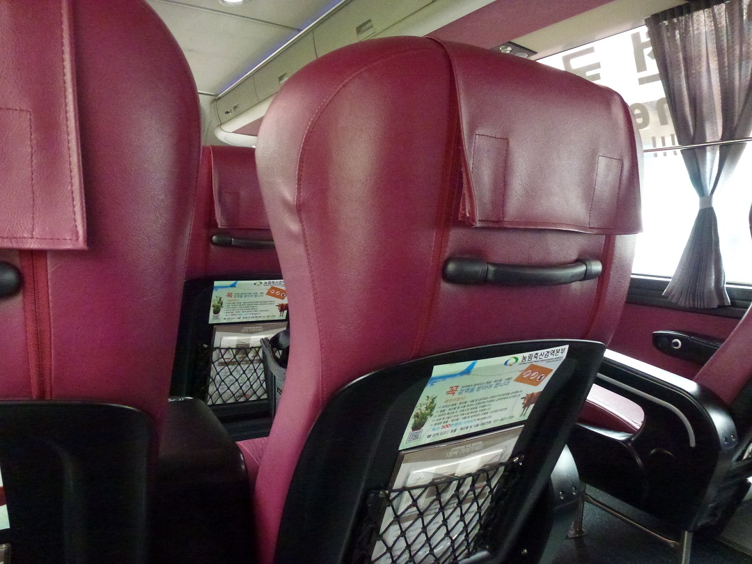 仁川空港から水原への移動に、鉄道とバスのどちらにするか迷ったのですが、バスにして正解でした。3列シートの高級バスで、水原市街まで高速道路を通って1時間20分ぐらいでした。空港からの発車頻度(7B乗り場)も25分に1本ぐらいなので、待ち時間も問題無しです。