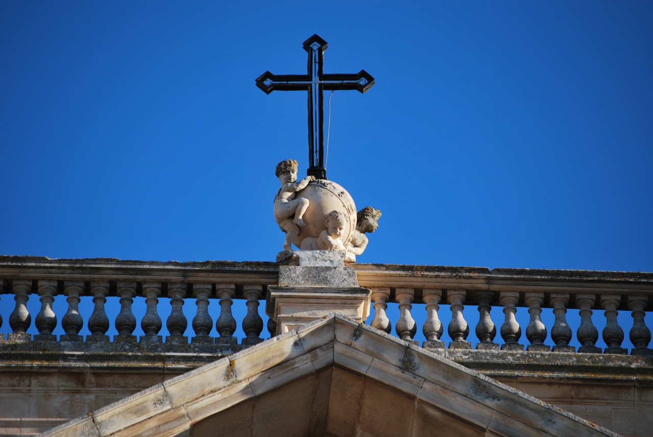 2つの塔の間、聖堂の戴きの十字架を見て下さい
