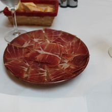 英語のメニューを頼んだらセット用のメニューだった。もちろん単品もある。ケースに並べられているタパから指さしでの注文も可能。私はそこでシャンピニオンソテーを選んでみた。牛の煮込み、生ハム、きのこスープ、スパゲティとワイン。きのこのスープがとても美味しかった。料金はしめて31.9ユーロ。