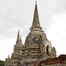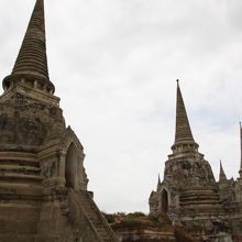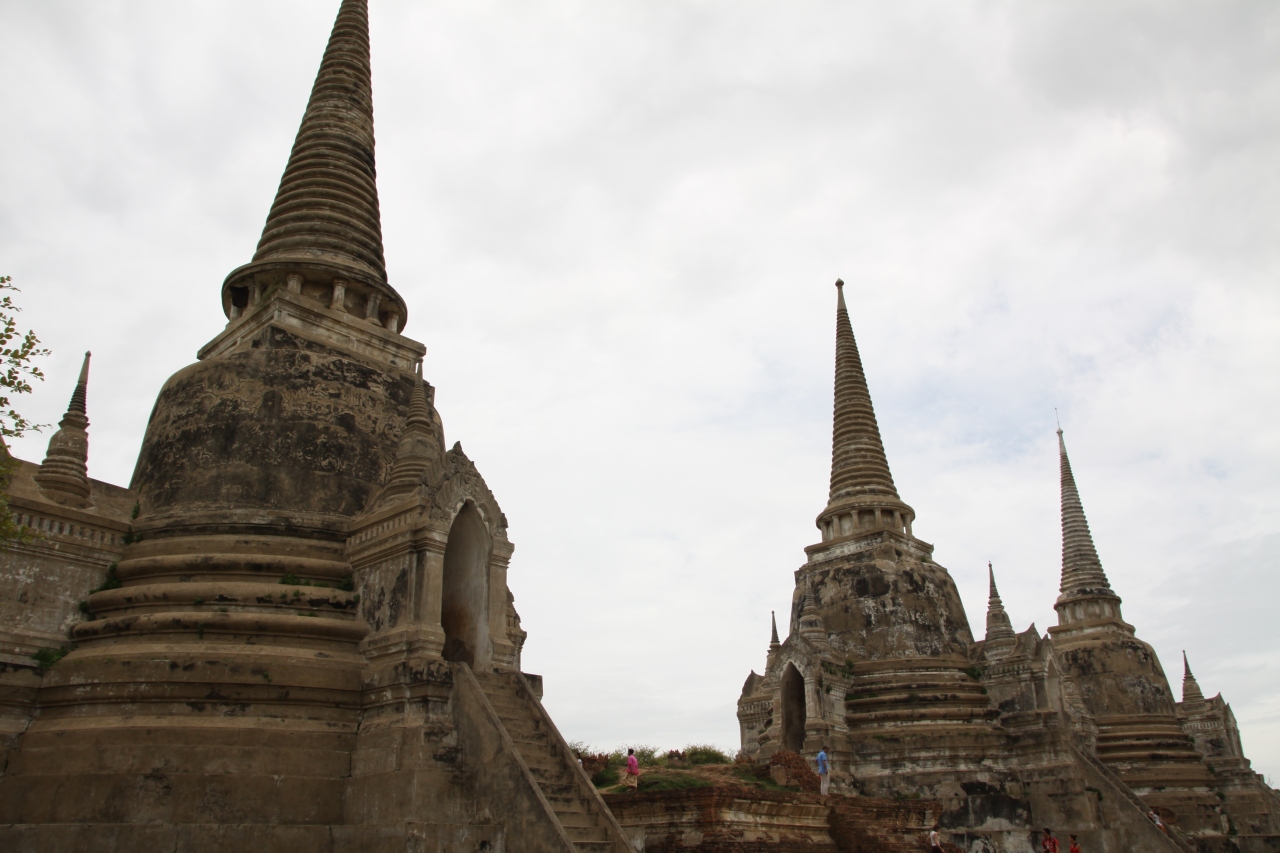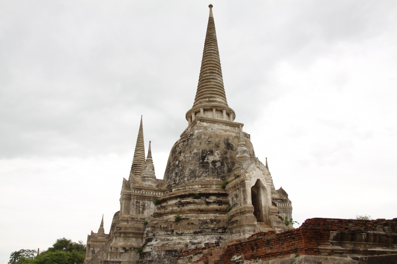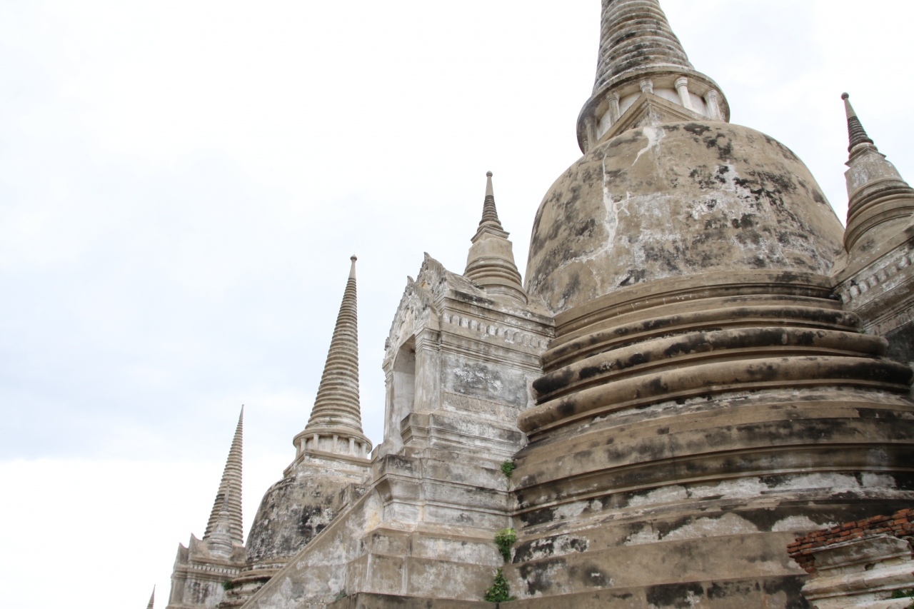 アユタヤ観光では最後に訪れた場所です。入場料50バーツのチケットを買って入ることになっているのに王宮跡からそのまま敷地に入ってくる人が多かったような。塔自体は近づくと意外に高く、敷地も広いので3つの塔の周辺をぐるりと一回りするのに少々時間がかかりました。