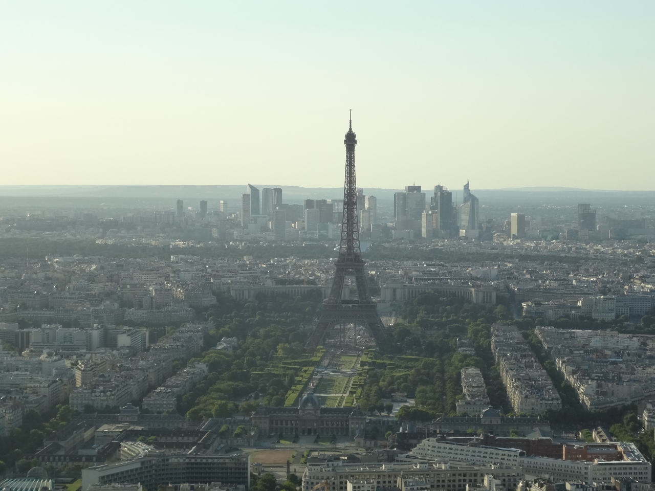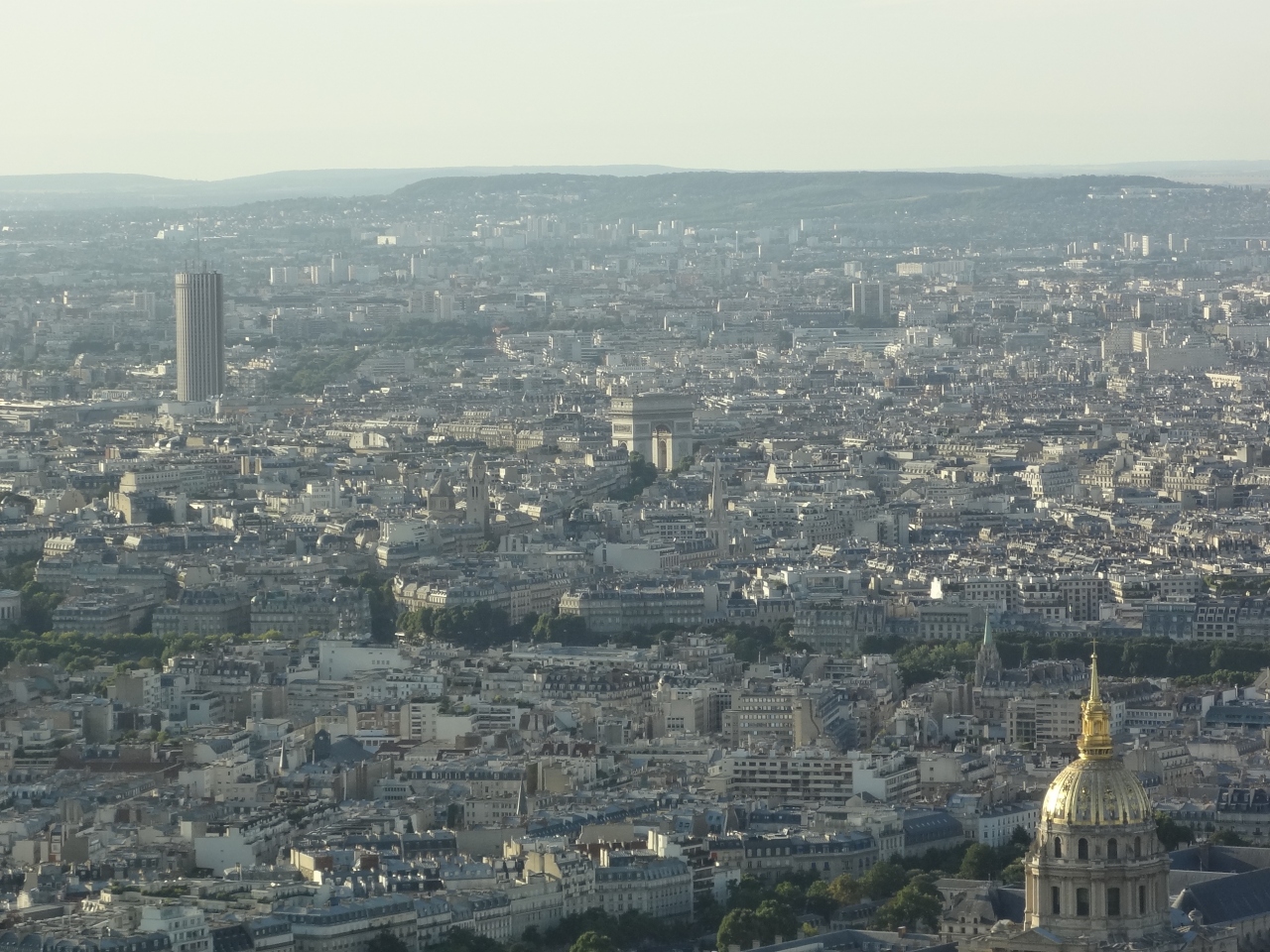 屋上展望台への入口はビルの入口の先、階段を上がったところにありました。展望台のチケットは13.5ユーロ、少々高めでした。展望台は56階の屋内展望台と、そこから3階分階段を登る屋上展望台がありました。エッフェル塔、アンヴァリッド、ルーブル美術館、サクレクール寺院を始めとする主要な観光スポットが良く見え、モンマルトルの先にル・ブルジェ空港まで見えました。案外見つけにくかったのは凱旋門で、周囲の建物に埋もれている印象でした。
