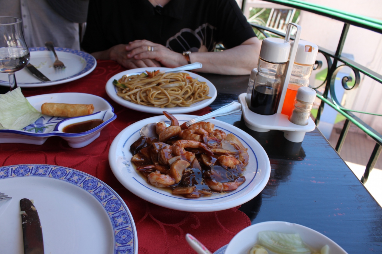 LOLL DE VIETNAMと出ていたので、「生春巻き」と思ったのに、実際は揚げた春巻きだった。他に海老と野菜の炒めたもの、ワンタン、焼きそばそしてワインと水を注文。
