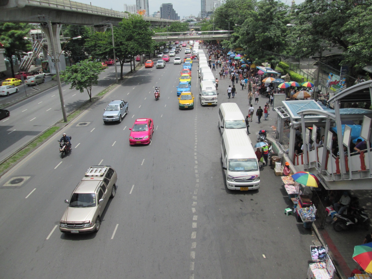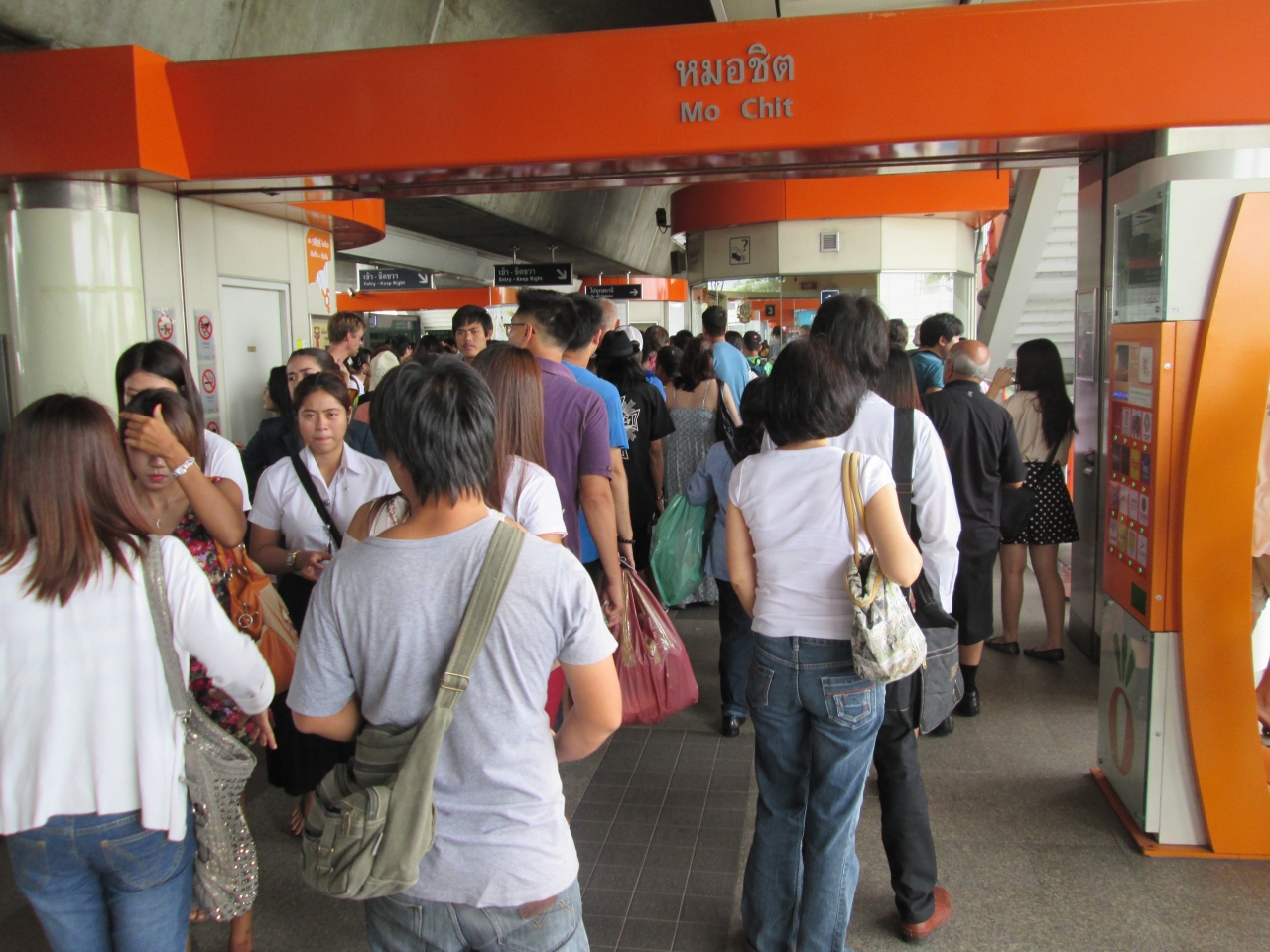 チャトゥチャック・ウィークエンド・マーケットの最寄駅でスクインピットの終点駅です。サイアム駅側の改札口がマーケットに行く出口です。写真のように週末は大勢の観光客や地元のお客さんで混雑します。MRTチャトゥチャック公園駅があり、BTSとMRTの乗り換えができる駅です。