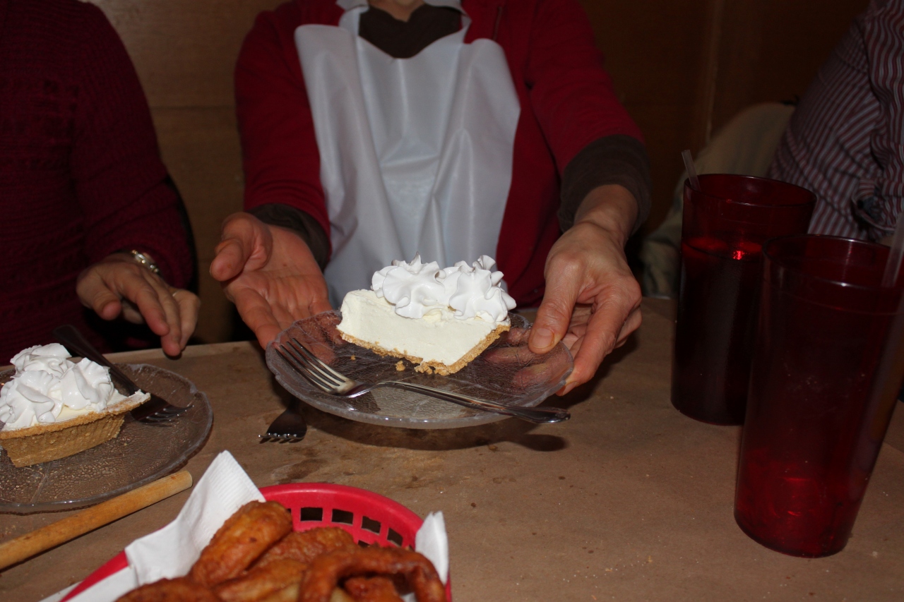 だいたい一人半ダースを注文するそう。この時私たちは一人4はい。計24。15分ほどでウェートレスが大きなお盆に山盛りのカニをテーブルにぶちまける。
