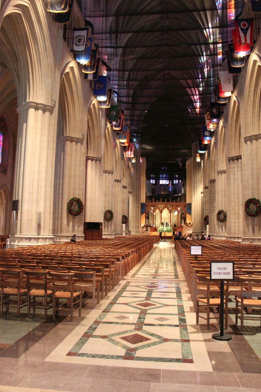 ワシントンDCを旅したとき、ホテルはジョージタウンに取った。それで、この大聖堂には徒歩で行った。DCの中心部とはひと味違う落ち着いた街にマッチして、気品が感じられる立派な大聖堂である。中にはいると美しいステンドグラスがある。ヨーロッパのこれでもかと言うほどの豪華さとはだいぶ違ってシンプルで荘厳な感じがする。