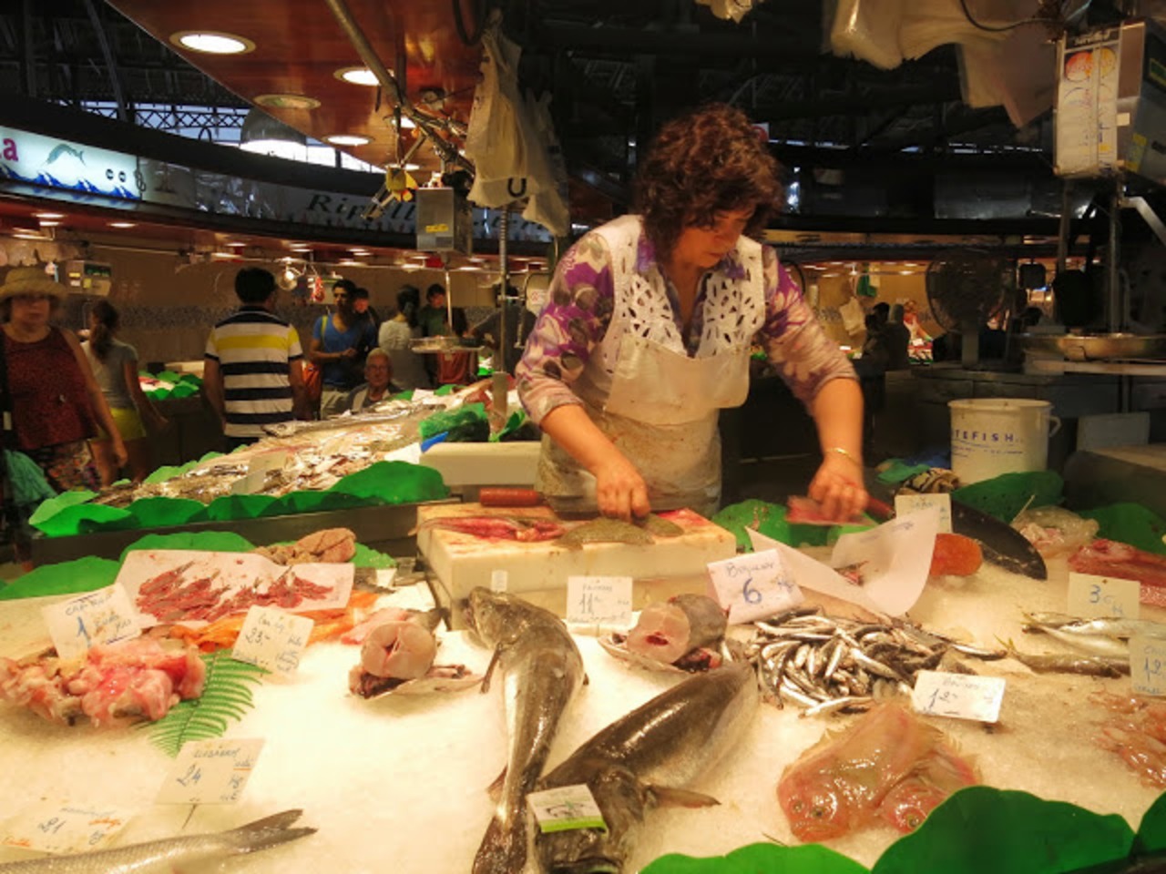 地元のお客さんと観光客が入り乱れる巨大な市場。奥に入れば、入るほど価格が下がります。魚介、ハム、タパス、フルーツ、チーズとなんでもあり、買い食いに楽しい場所なので、手ぶら&ラフな格好で食べ歩きしたい。