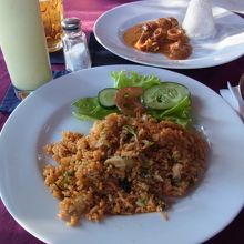 ラヤウブド通りからゴータマ通りに入って少し歩くと左側にあります。バリフレンチのお店ということで少し洒落た感じのお店でした。ナシゴレン、ミーゴレン、あともう一品注文しました。フレンチナシゴレンもあるそうです。ミーゴレンはちょっとくせのあるにおいがしました。