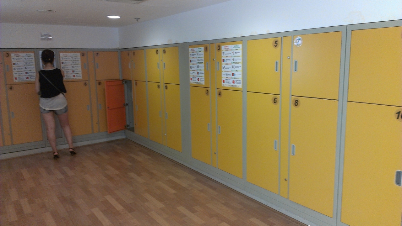 1Fの大陸へのバスチケット売り場奥に、香港ではめずらしいコインロッカーがあります。無料Wifiは利用できますが時間制限30分です。他のモールに比べると短めです。1FにHSBCプレミアセンターがあり、その前に行けばHSBCの無料Wifi電波を拾えます。