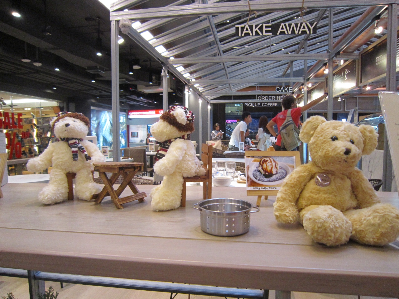 サイアム駅からパラゴンを過ぎるとあります。Forever21等など若い世代をターゲットにしたお店が多かったです。大きなクマのぬいぐるみがいるカフェがありました。小さなクマもディスプレイされていて可愛かったです。