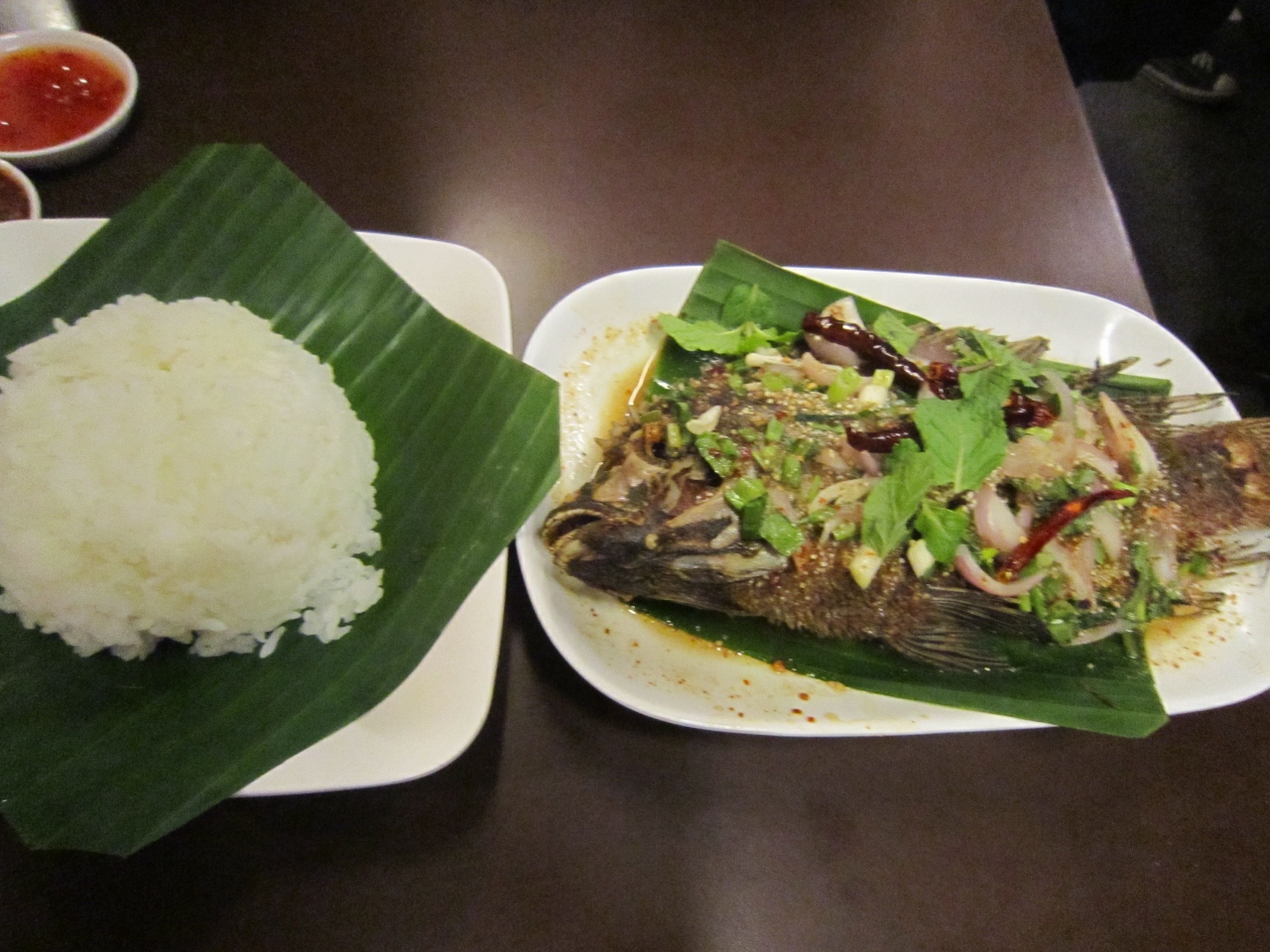 夜見るといつも混んでいたのですが平日の昼に行くとすいていました。メニューは写真付きで英語のものがあるので注文しやすかったです。Spicy fried fish salada (名前が違うかもしれません)が105Bで美味しかったです。ドリンクのメニューはスムージーが70B位したと思います。