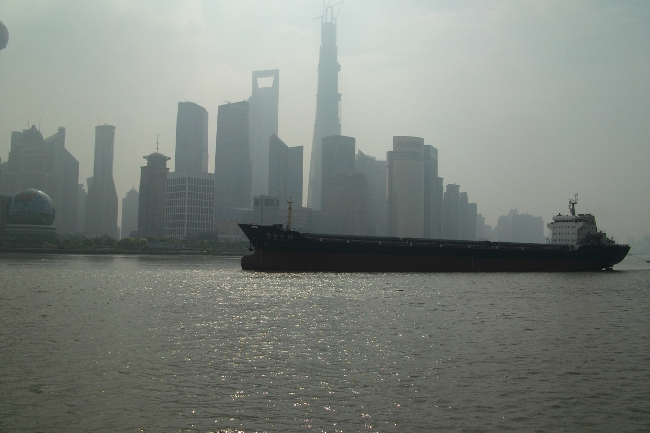 上海を紹介するテレビや雑誌では必ず目にするところなのでやっぱり見に来なくてはと思い朝早く来ました。しかし、朝は外灘側から高層ビル群を望むと逆光になりいい写真が撮りにくいばかりか、かすんでいて良く見えませんでした。