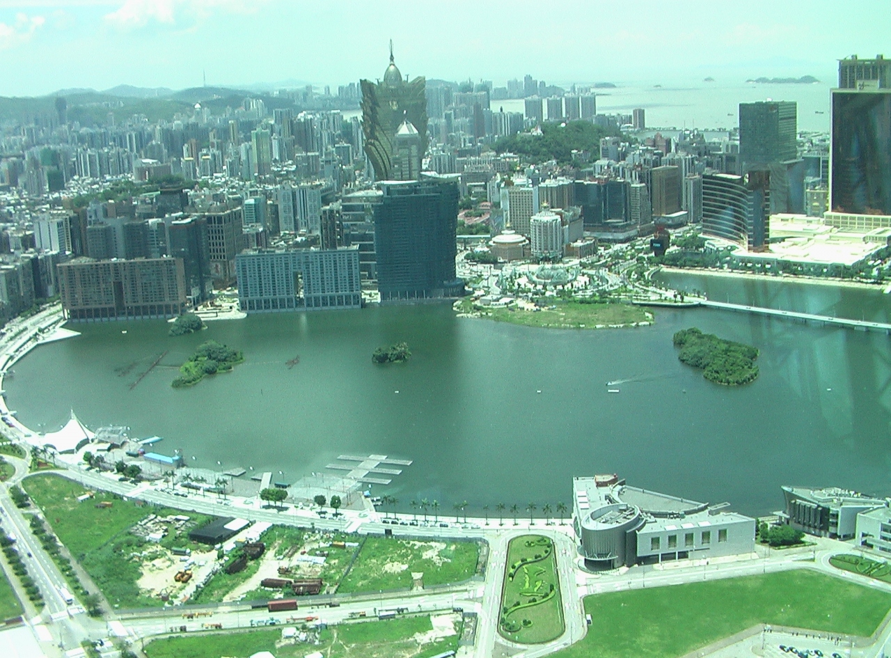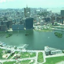 バンジージャンプで有名なマカオタワーですが、この日は誰もしていませんでした。私も怖くてもちろんしません。あまり高くはありませんが、マカオの街並み、宿泊のホテル、カジノのホテルなど、まるで地図を見ているようです。もちろん、お隣の中国・珠海も見えます。