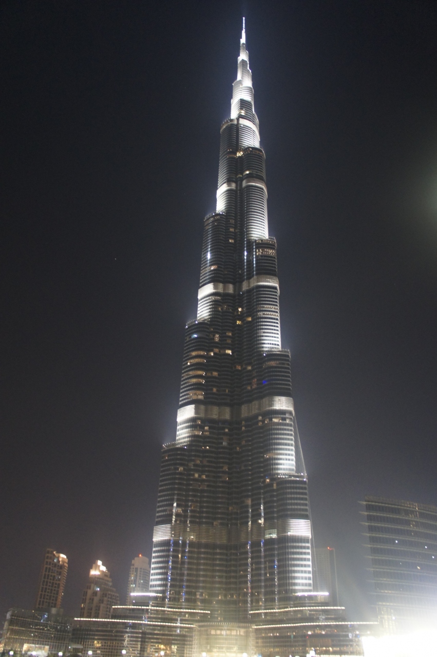 トランジットで数時間自由にできたのですが、ドバイに着いたのが23時ころだったので、帰路にタクシーがつかまらないリスクを考えて、空港で3時間くらいのドバイツアーを手配して行ってきました。空からみても突出してましたが、近づくと圧倒的に大きく、そして美しかったです。