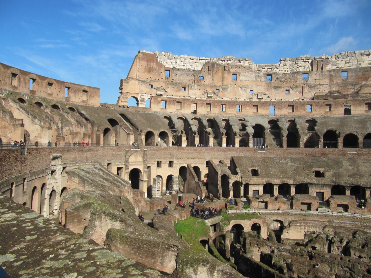 古代にここまでの建造物が作られ,なおかつ街中に当たり前のようにある,まさにローマを象徴した建物.実際に内部には見所も多く,古代ローマ時代のエレベータなども展示されている.コロッセオ前のみやげ物屋はうっとうしく注意.観光客が多い.