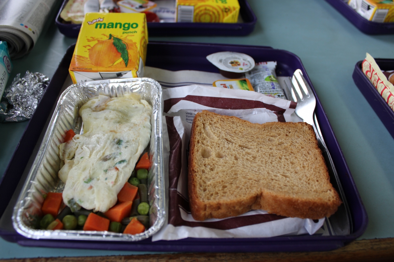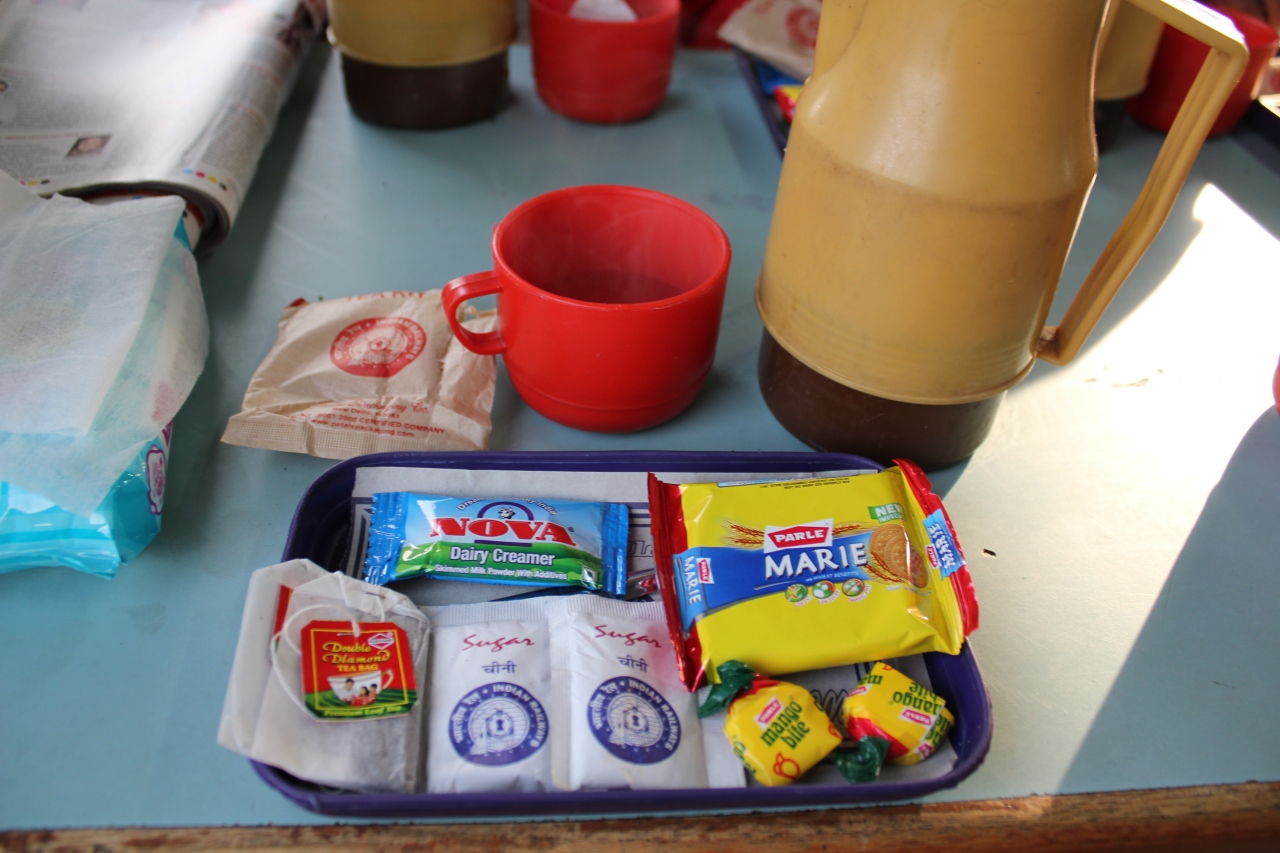 4時間半の列車の旅でした。乗るとすぐに水が配られました。その後に2回の食事サービスがありました。どちらにも紅茶のサービスがありました。