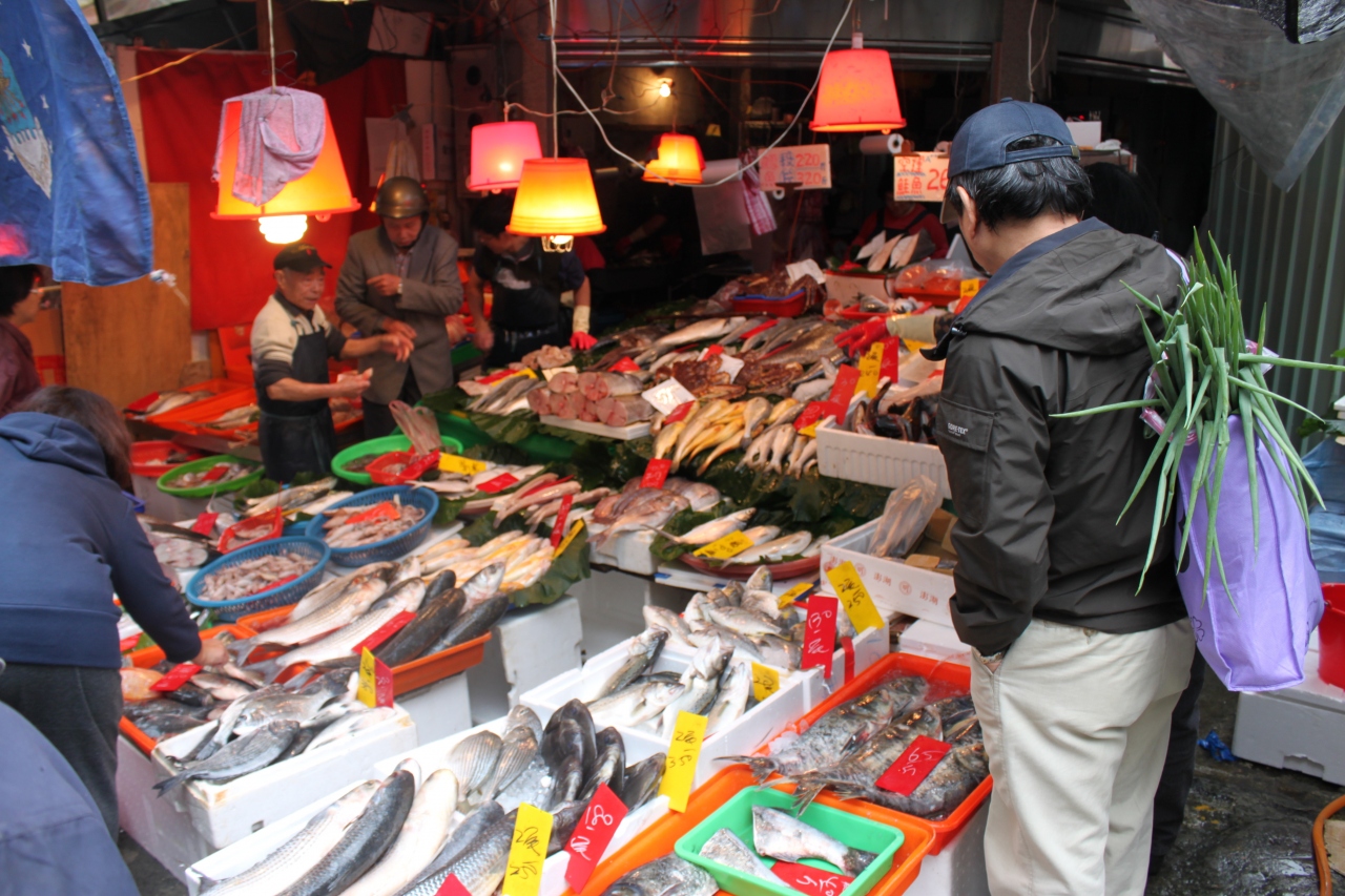 朝から元気に行動したい人にはちょうど良い。地下鉄駅から近いし、市民の暮らしや物の値段を知るには良いところ。長屋風の商店と屋台がずっと連なっている。魚、肉、野菜、果物、衣類、雑貨、靴等々。肉などは足や骨が付いたまま売られていて、今の日本ではなかなか見られない光景。生鮮品は買えないけれど、商品の種類を見たり、価格比較などすればまた面白い。楽しい朝散歩になる。