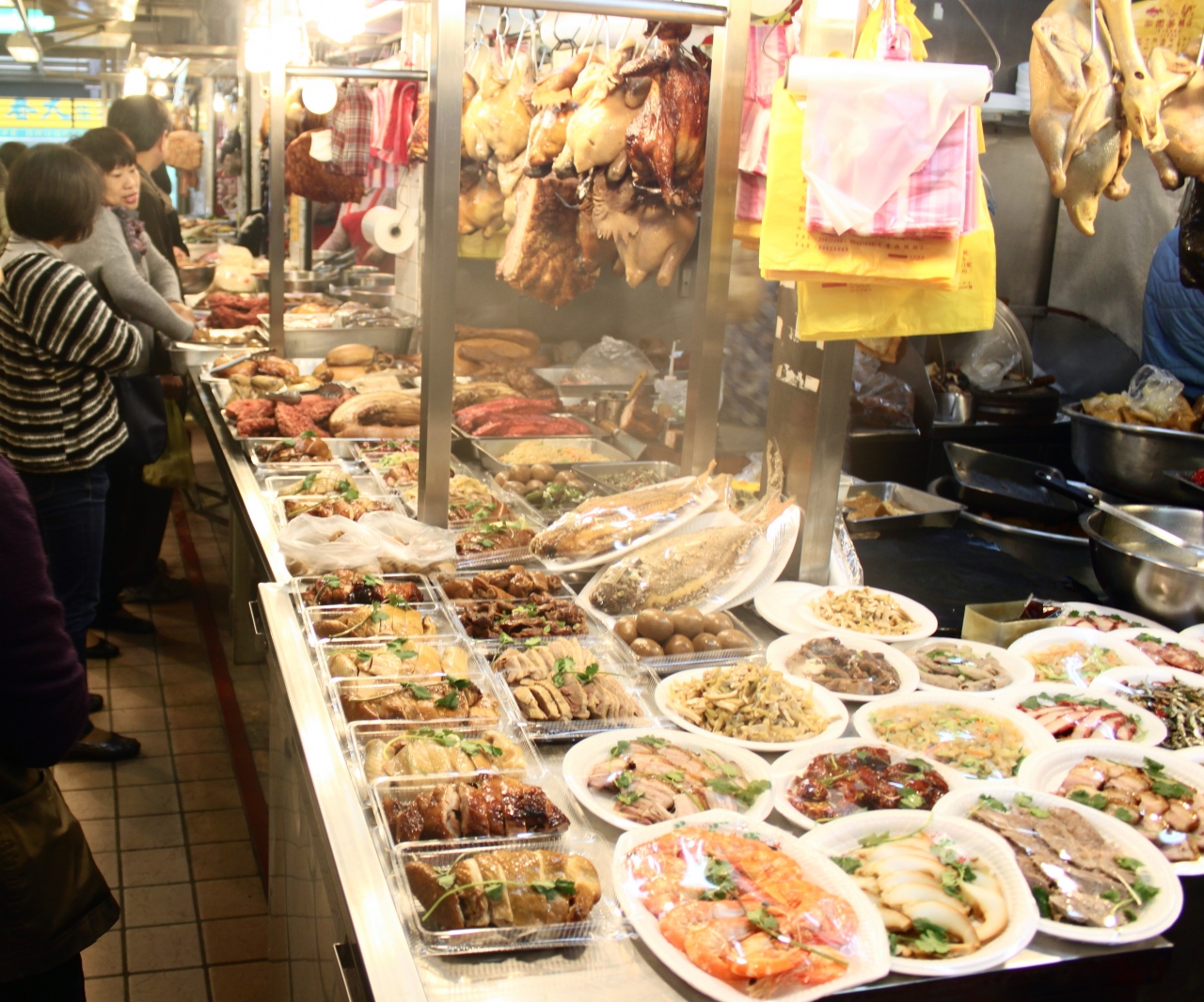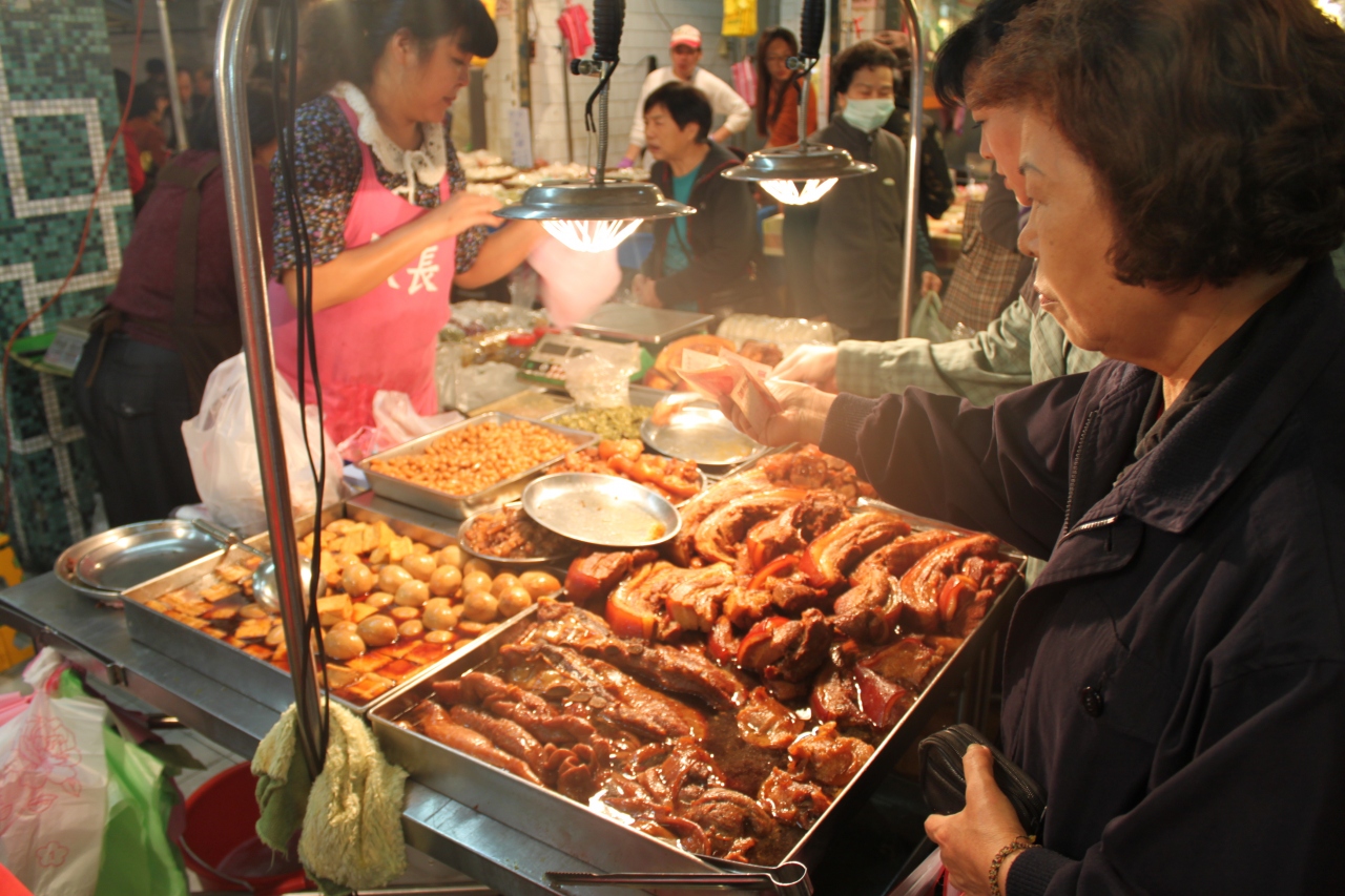 行天宮に行った帰りに、占い横丁を通って地下道から出てきたら、この市場が目に付いた。市場好きなので早速は入ってみた。観光客相手ではなく、市民のための市場。食べ物、特に出来合いの総菜が多い。台湾は朝市、夜市が発達しているがそれは外食文化が盛んだと言うことなのだろう。家でつくるのが日本より少ないようだ。日本語の上手な人が話しかけてくれて、私たちが見ていた物を色々説明してくれた。あまりに自然だったので最初は店の人かと思ったがそうではなかった。店の人もだったが、親切で有難かった。市場の印象も一層良くなった。