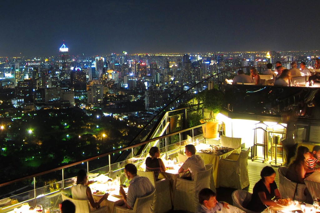 バンコクの超高層ビルの屋上バー・レストランでよく紹介されるのは「Sirocco」が多いですが、あそこはエレベーターを降りたところでドレスコード(お客の自己責任に任せない)を盾に人の頭からつま先まで服装チェックをされます。それだけ上品なのかと言えば水商売風の女性と西洋人の2人連れやお金はあるが礼儀を知らないアジア系観光客で騒がしく、しかもお茶は大きなポットに露骨にティーバック一つだけ。おまけに絶景が売りのクセに写真撮影禁止など実に不快なのです。