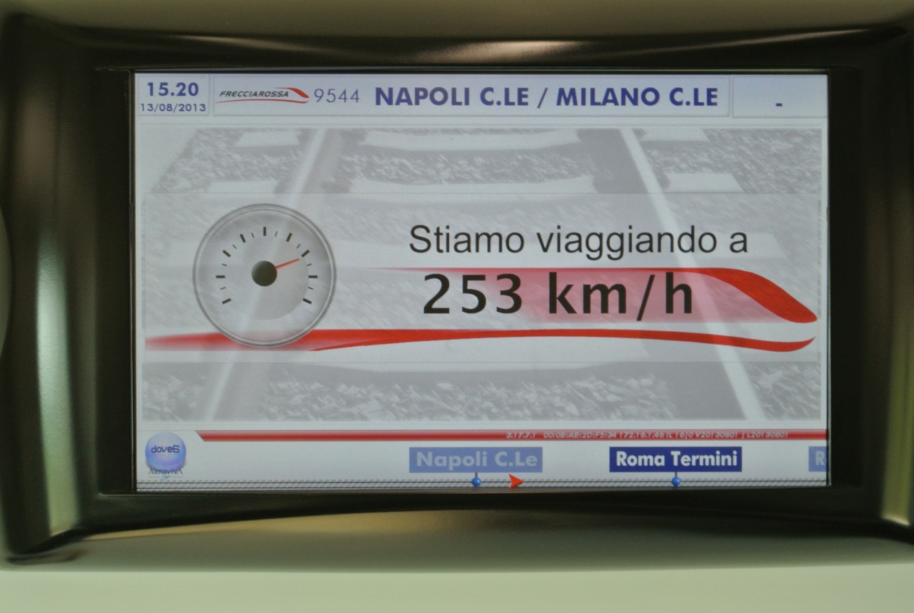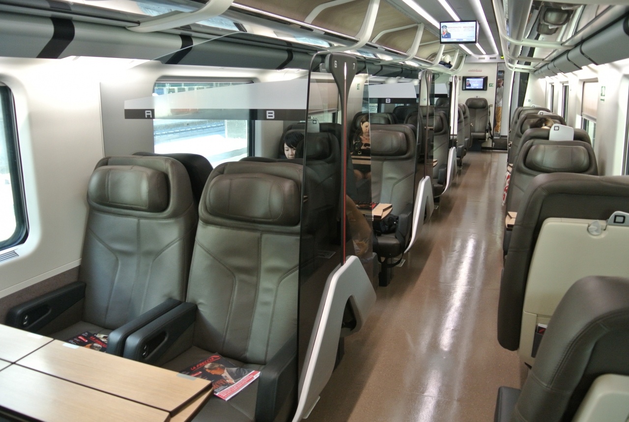 ローマからフィレンツェまでフレッチャロッサ( Frecciarossa)で移動しました。1等車は日本の新幹線で言えばグリーン車のような感じでしょうか。座席は皮製でゆとりのあるシートでとても快適です。また、ドリンクサービスもありコーヒー、ソフトドリンクのほかスパークリングワインや赤白ワインなどのアルコールもリクエストできました。チケットは事前にイタリア国鉄のHPから英語ページを選択しオンラインで予約しましたが、割安な料金で購入することができました。欧州の鉄道のチケットは日本語で購入できるHPやツアーなどでも購入できますが、料金を比較すると断然こちらの方が安いです。また、同じ距離、所要時間で日本の新幹線と比べても安いと思いました。
