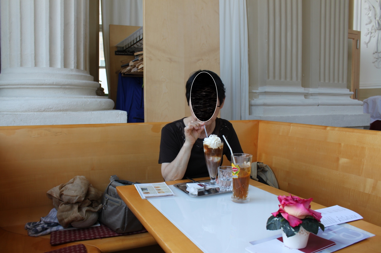 シェエーンブルン宮殿は2度目。この2年前に来たときはツアーで時間切れ。グロリエッテまでは来られなかった。なので今回のフリー旅では是非にとやって来た。ここまでは入り口からは30分くらいかかるので一休みにちょうど良い。私は日本流に言うとアイスコーヒーフロート、夫はアイスティ。アイスクリームがたっぷりで、とても美味しかった。雰囲気も良く、ここからはウィーン市内もながめられてその意味でも立ち寄る価値大。願いが叶って満足感いっぱい。