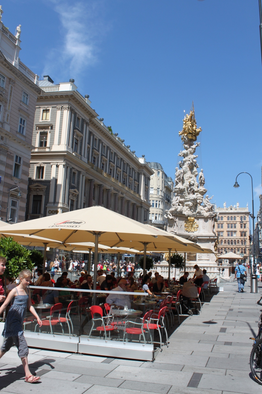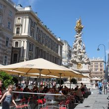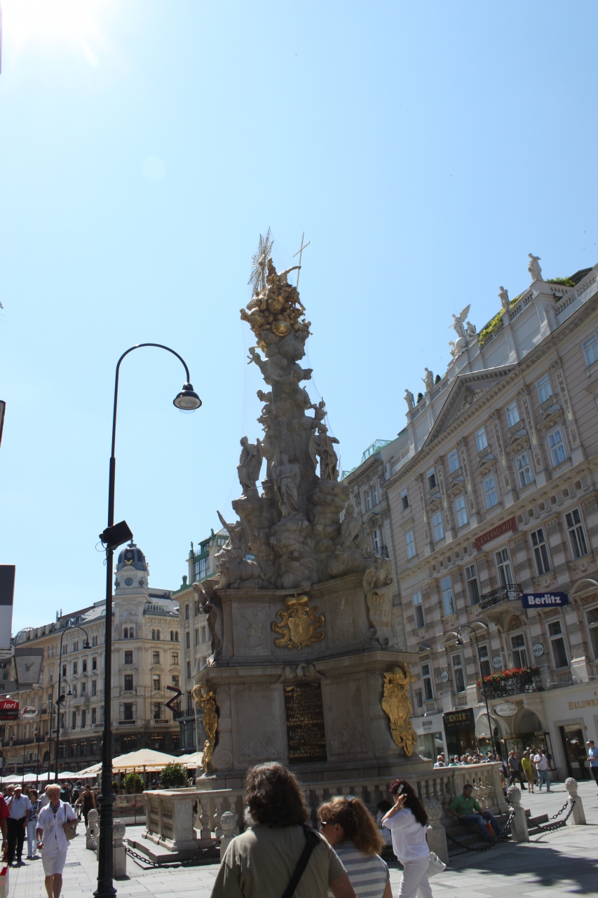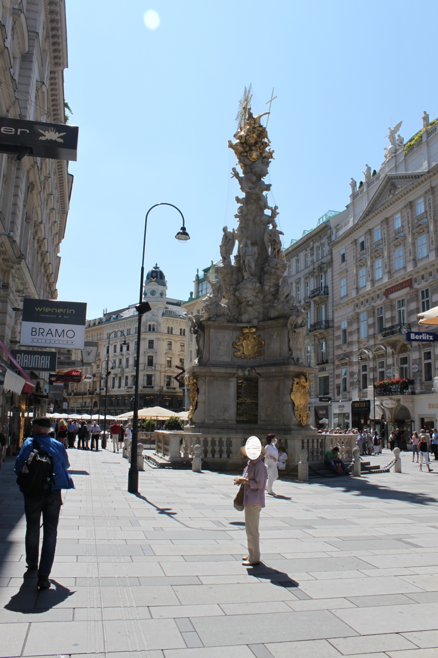 幅の広いにぎやかな通りの真ん中に、目立つ色でたっているので、通りを歩くたびに何度も見ることになった。日本ではこのような建て方はほぼない、と思うのでやはり文化の違いを感じる。ペストの集結を神に感謝して建てたと言うことで、当時の病の蔓延がいかに大変だったかを窺わせる。