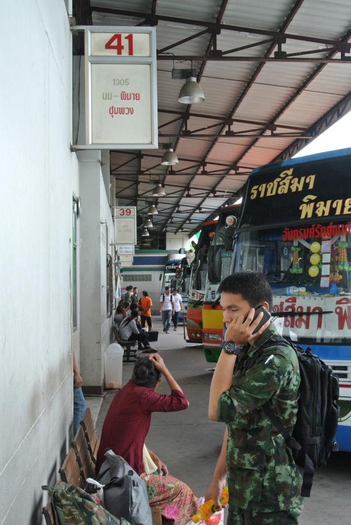コラート(ナコンラチャシマ)からピマーイへ行くバスは、コラートの新バスターミナル(第2バスターミナル)から出ています。その41番乗り場が、ピマーイ経由チュンプワン行きの乗り場になっています。